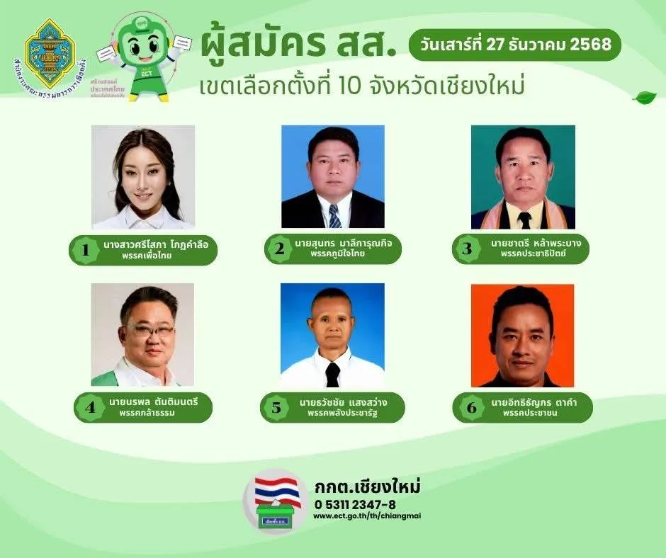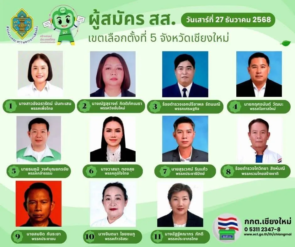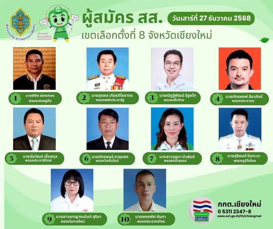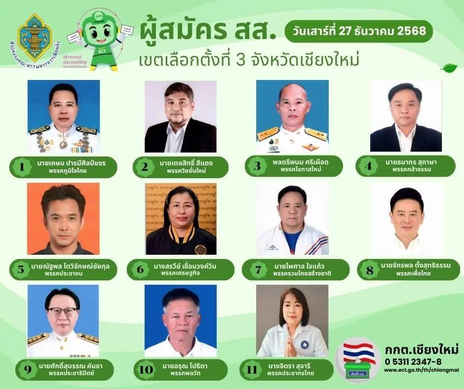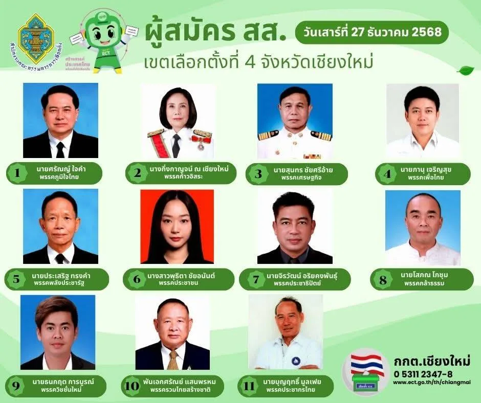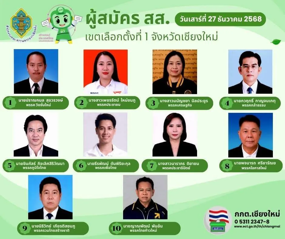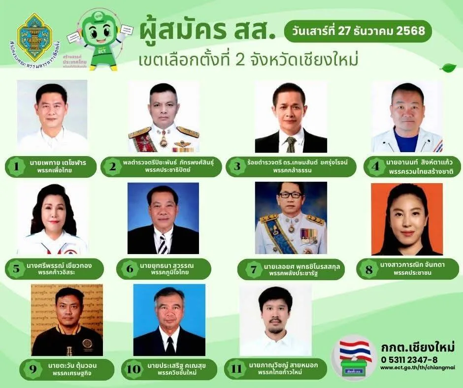 นายนพดล สุยะ ผู้อำนวยการสำนักงานการเลือกตั้งจังหวัดเชียงใหม่ เปิดเผยว่า ในวันแรก(27 ธ.ร. 68) ของเปิดรับสมัครสมาชิกสภาผู้แทนราษฎร ทั้ง 10 เขต ของจังหวัดเชียงใหม่ มีผู้สนใจจากพรรคการเมืองต่างๆ มาสมัครในทุกเขต รวมทั้งสิ้น 93 คน ซึ่งมีมากเป็นอันดับ 3 ของประเทศ อันดับ 1 คือ กรุงเทพมหานคร อันดับ 2 คือ จ.นครราชสีมา ซึ่งทั้ง 2 จังหวัด มีจำนวนเขตเลือกตั้งมากกว่าจังหวัดเชียงใหม่