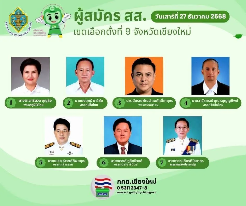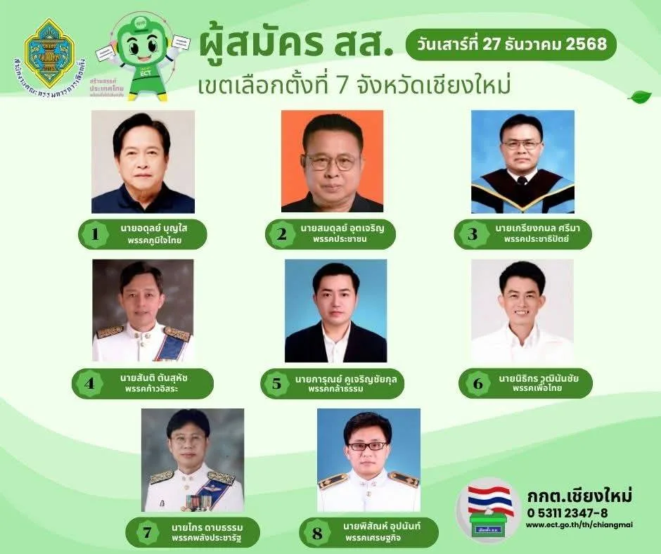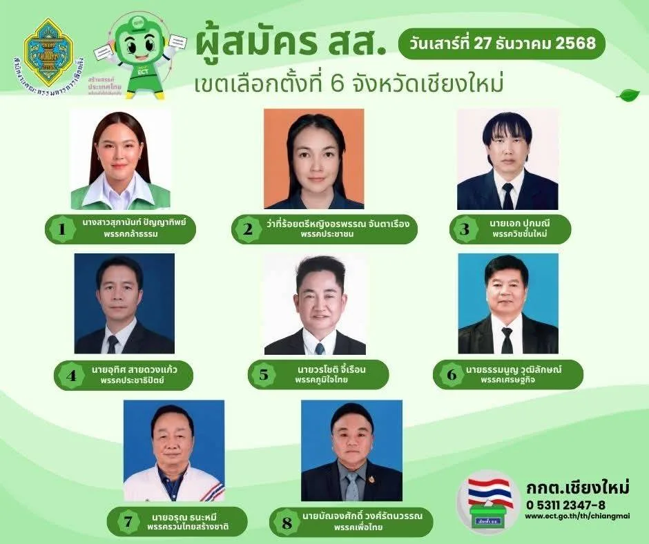 ทั้งนี้การรับสมัคร สส. จังหวัดเชียงใหม่ ทั้ง 10 เขตเลือกตั้ง รับสมัคร ณ โรงพลศึกษา 2 สนามกีฬาสมโภชเชียงใหม่ 700 ปี โดยจะทำการรับสมัครไปจนถึงวันที่ 31 ธันวาคม 2568 เวลา 16.30 น. โดยไม่เว้นวันหยุดราชการ