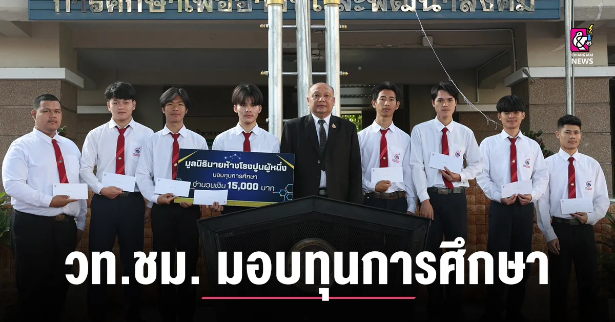 วันพฤหัสบดี ที่ 25 ธันวาคม พ.ศ. 2568 ดร.วัชรพงศ์ ฝั้นติ๊บ ผู้อำนวยการวิทยาลัยเทคนิคเชียงใหม่ ปฏิบัติหน้าที่ผู้อำนวยการสำนักงานอาชีวศึกษาจังหวัดเชียงใหม่ และรักษาการในตำแหน่งที่ปรึกษาด้านนโยบายและแผน สำนักงานคณะกรรมการการอาชีวศึกษา ให้เกียรติเป็นประธานมอบทุนการศึกษามูลนิธินายห้างโรงปูนผู้หนึ่ง ประจำปีการศึกษา 2/2568 งวดที่ 2 พร้อมให้โอวาทและกำลังใจแก่นักศึกษาที่ได้รับทุนการศึกษา ณ ลานอเนกประสงค์การกีฬา วิทยาลัยเทคนิคเชียงใหม่