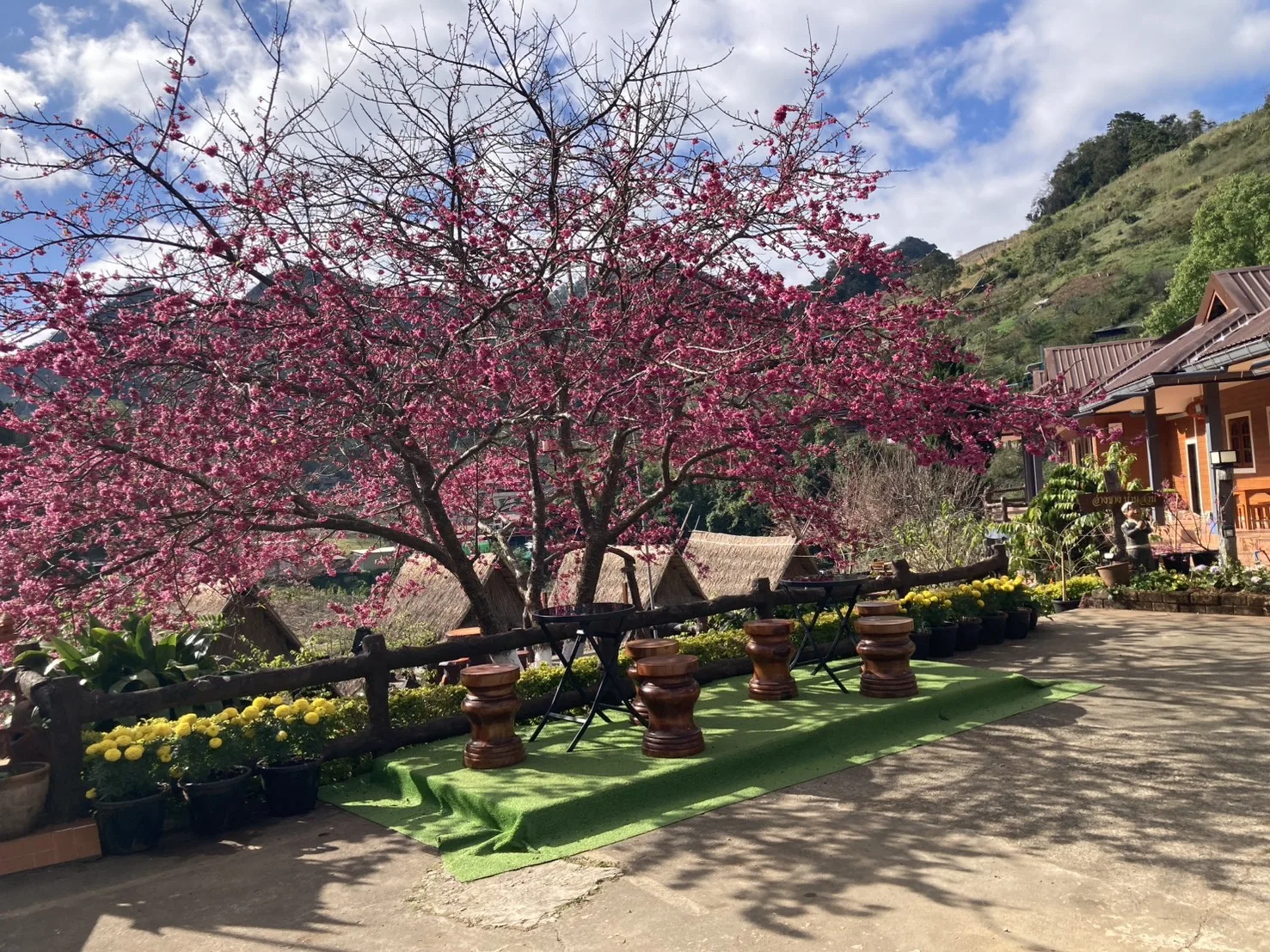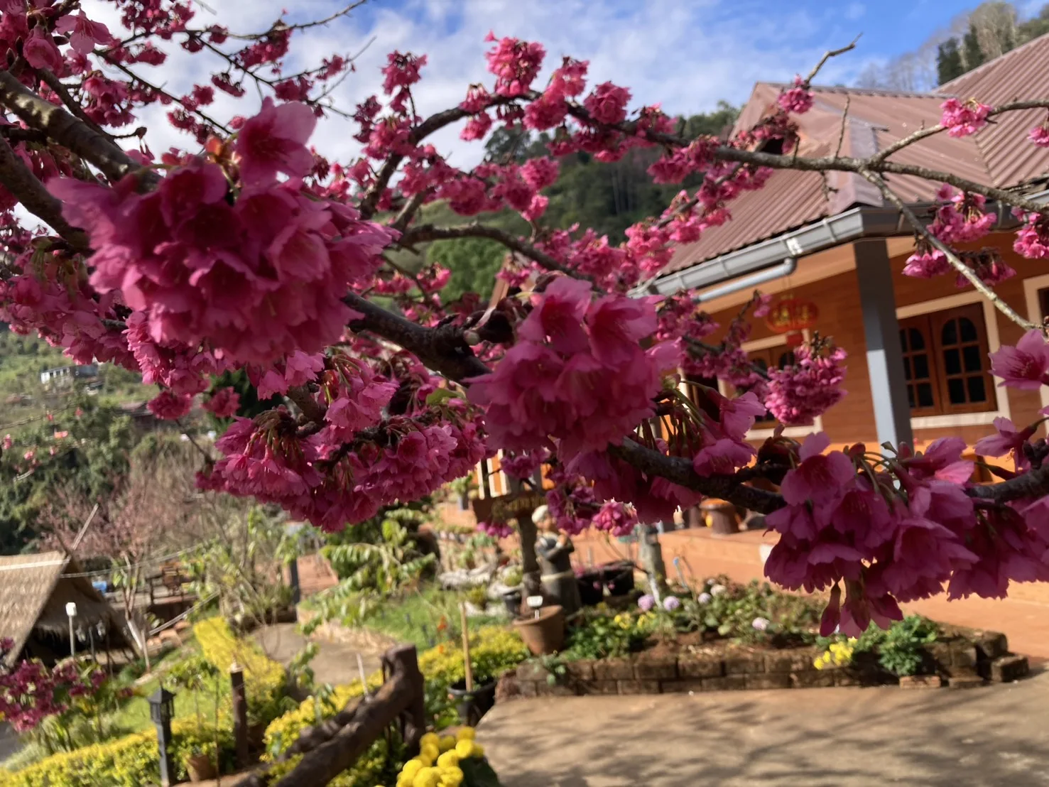 29 ธันวาคม 2568 บนดอยอ่างขาง บ้านคุ้ม หมู่ที่ 5 ตำบลแม่งอน อำเภอฝาง จังหวัดเชียงใหม่ ดอกซากุระแท้ ๆ ที่ได้ต้นพันธ์ุมาจากประเทศญี่ปุ่น นำมาทดลองปลูกที่ดอยอ่างขางที่มีความสูงกว่าระดับน้ำทะเล 1400 เมตร และสามารถปลูกได้และออกดอกทุกปีในช่วงฤดูหนาว กลางเดือนธันวาคม-มีนาคม ในปีนี้ออกดอกช้ากว่าทุกปี แต่ก็เริ่มผลิบานให้เห็นแล้วบางต้น คาดว่าช่วงปีใหม่ปีนี้จะทยอยบานในสวนของโครงการหลวง แต่มีต้นแม่พันธ์ุ ที่ปลูกในสวนเฉลิมพระเกียรติ 72 พรรษา ทางขวาป้ายออกดอกเต็มต้นดอกใหญ่ นักท่องเที่ยวสามารถเข้าไปถ่ายรูปได้