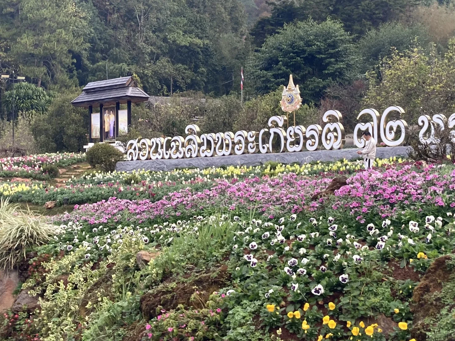 และในสวนมีดอกไม้เมืองหนาวออกดอกเต็มสวนสวยงามมาก มีดอกไม่เมืองหนาวหลายชนิดที่ปลูกเพื่อให้นักท่องเที่ยวมาสัมผัสความสวยงาม พร้ออากาศที่หนาวเย็นจับใจ ยังมีต้นดอกกุหลาบพันปี อีกหลายต้นที่เจ้าหน้าที่นำมาปลูกในสวนทั้งสีแดง สีชมภู กำลังออกดอกบานเต็มต้นดอกใหญ่สวยงามมาก ถ้าเข้าชมช่วงเช้าจะได้เห็นน้ำค้างจับต้นใบและดอกสวยงามถ่ายรูปแบบมีชิวิตชีวา ในแปลงต้นบ๋วยพันปีกำลังออกดอกแข่งกับต้นดอกซากุระ มีนักท่องเที่ยวมาถ่ายรูปกันจำนวนมากมีที่จอดรถ แล้วยังได้เข้าชมแปลงพืชผักสวนครัวเมืองหนาว ที่มีพืชผักหลายชนิดในแปลงทดลองและมีมากสีสรรในแปลง และตรงทางเข้าและออกโครงการมีตลาดพืชผักผลไม้เมืองหนาวของชาวบ้านบนดอยอ่างขาง ที่มาจัดจำหน่ายบริการแก่นักท่องเที่ยวในราคาที่ต่อรองกันได้ และยังสามารถเข้าชิมกาแฟดอยอ่างขาง นักท่องเที่ยวบางท่านอยากนอนพักก่อนจะขึ้นดอยอ่างขางก็จะมีที่พักเปิดใหม่ตรง สวนบัว ปากทางขึ้นอ่างขางในบรรยากาศยามเย็นมองเห็นยอดดอยอ่างขางชัดเจน ในราคาไม่แพง เพราะบนดอยอ่างขางไม่มีที่พัก มีแต่ที่กางเต้นเท่านั้น