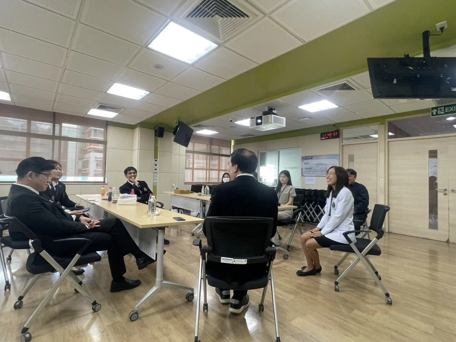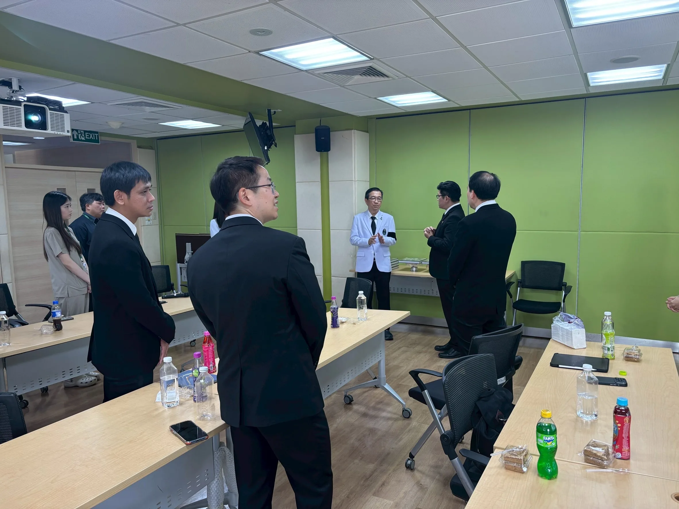 โดย ศ.นพ.ธวัชชัย อัครวิพุธ คณบดีคณะแพทยศาสตร์ศิริราชพยาบาล มหาวิทยาลัยมหิดล พร้อมด้วย ผศ.พญ. อุษาพรรณ สุรเบญจวงศ์ ประธานกรรมการการฝึกอบรมด้านทักษะทางคลินิคในสถานการณ์จำลอง (Simulation) และคณะให้การต้อนรับ