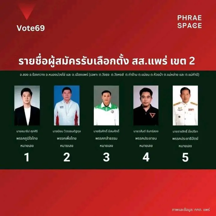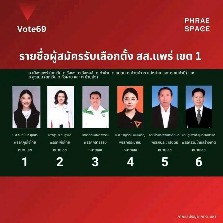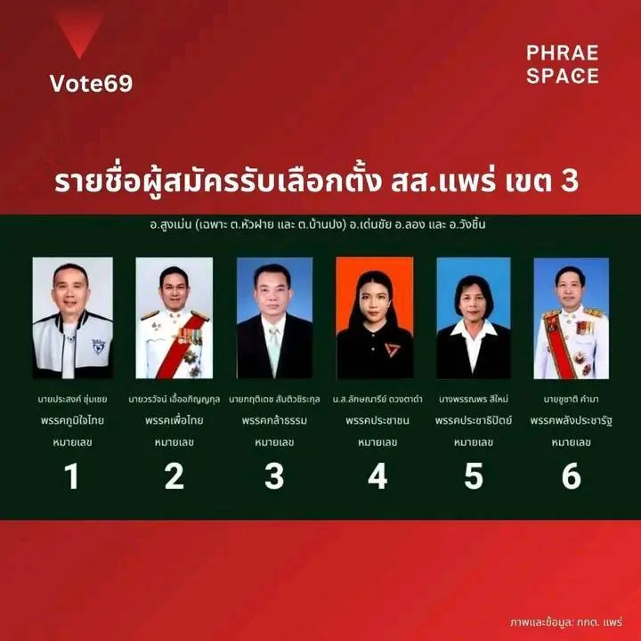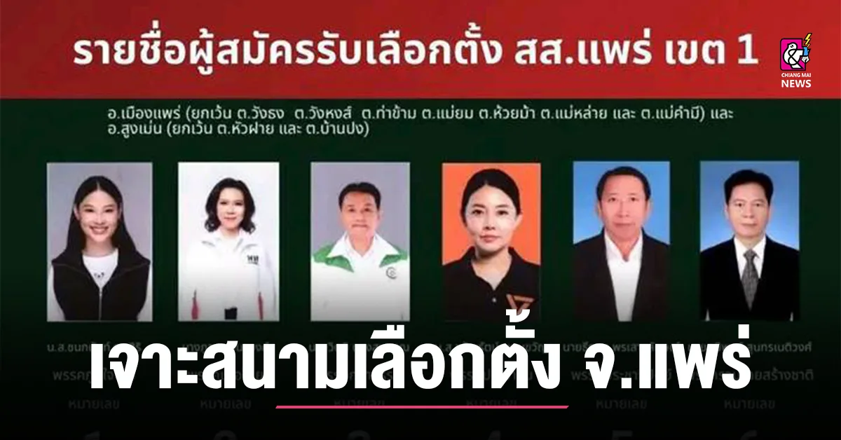 ผู้สื่อข่าวรายงานว่า สำนักงานกกต.จ.แพร่ได้สรุป จำนวนผู้สมัครรับเลือกตั้งสมาชิกสภาผู้แทนราษฎรแบบแบ่งเขตเลือกตั้ง เขตเลือกตั้งที่ 1 – 3 จังหวัดแพร่ ระหว่างวันที่ 27 – 31 ธันวาคม 2568 ณ ห้องโสตทัศนศึกษาวิทยาลัยเทคนิคแพร่ ดังนี้