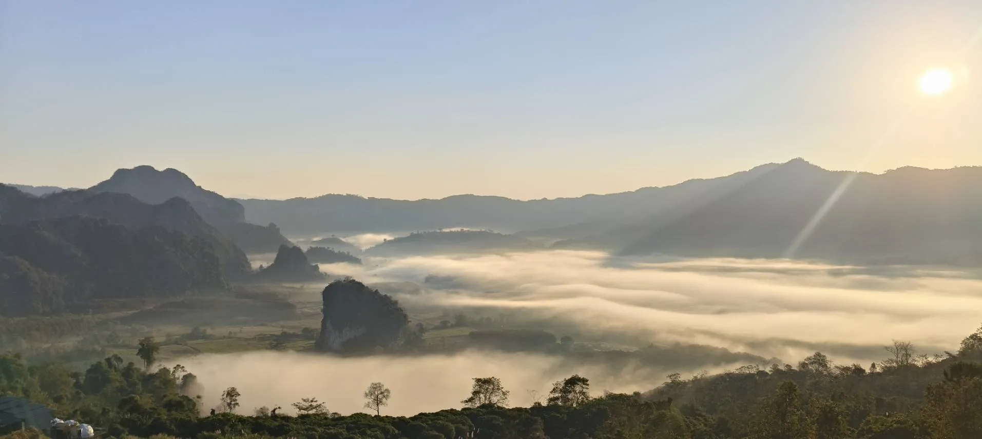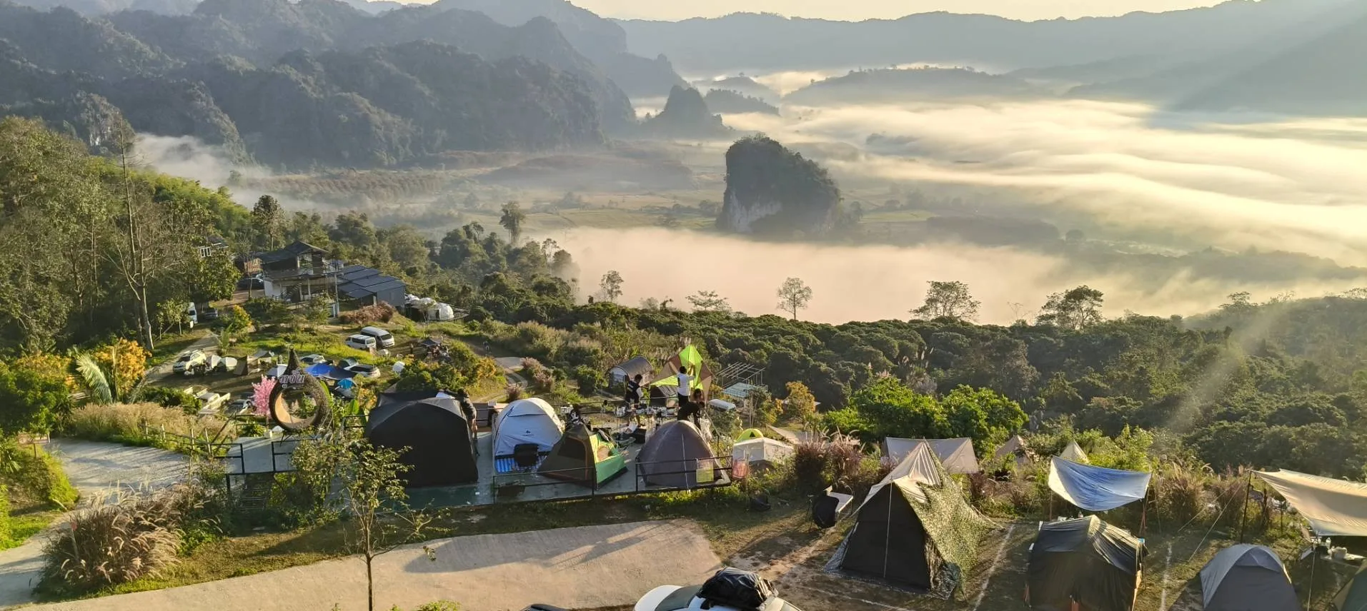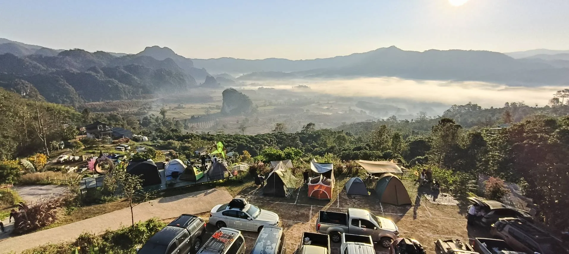วันที่ 2 ม.ค.69 ผู้สื่อข่าวรายงานว่า เมื่อช่วงเช้าที่ผ่านมาผู้สื่อข่าวได้ลงพื้นที่ไปยังลานกางเต้นท์ภูซันฟาร์ม ต.ผาช้างน้อย อ.ปง จ.พะเยา พบว่าเช้านี้นักท่องทเยวทั่วสารทิศได้เดินทางมาชมความงามของทะเลหมอกและแสงแรกยามเช้าพร้อมทั้งยังมีไฮท์ไลน์ในพื้นที่คือผาช้างน้อยซึ่งเป็นเขากลางทุ่งนาซึ่งเป็นจุดเช็คอินที่สำคัญของพื้นที่ ต.ผาช้างน้อยแห่งนี้ด้วย โดยนักท่องเที่ยวที่มาส่วนใหญ่จะชอบมานอนกางเต้นท์ในรูปแบบคนรักและครอบครัวด้วยเช่นกัน ทั้งนี้มีรายงานว่าช่วงปีใหม่ตั้งแต่วันที่ 30 ธ.ค.68 ที่ผ่านมาจนถึงวันนี้มีนักท่องเที่ยวเข้ามาพักและชมความงามของพื้นที่แห่งนี้ไม่ต่ำกว่าพันคนด้วยกัน