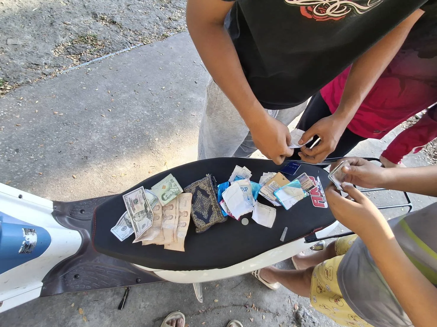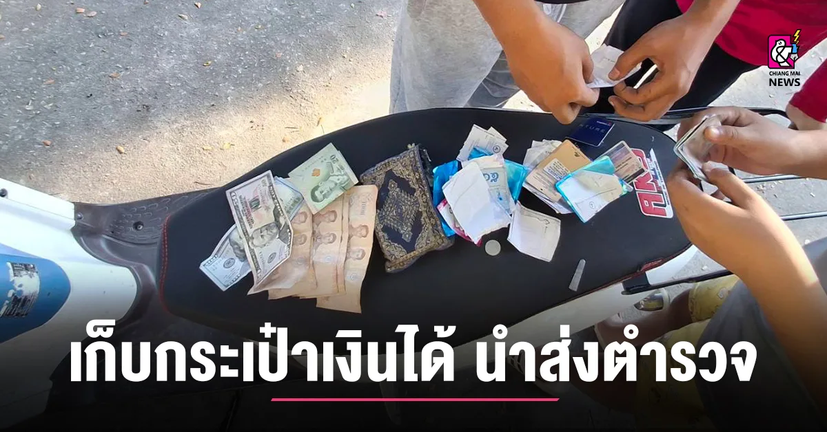 จากการสอบถามทราบว่าช่วงเวลาประมาน16.30 น. ขณะวิ่งเล่นอยู่แถวหน้าบ้าน มองเห็นมีกระเป๋าผ้าปักลายสีดำตกอยู่ริมรั้ว จึงได้เก็บมาเปิดดูพบว่าภายในมีเงินสดไทยจำนวนหนึ่งและ เงินดอนล่าจำนวนหนึ่ง และมีใบอนุญาตขับขี่รถระบุเป็นหญิงชาวต่างชาติจึงได้นำไปบอกผู้ใหญ่ที่อยู่ในบริเวณนั้น ก่อนที่จะโทรแจ้งเจ้าหน้าที่ตำรวจสภ.แม่ปิงเข้ามารับกระเป๋าเงินดังกล่าวเพื่อติดตามหาเจ้าของต่อไป