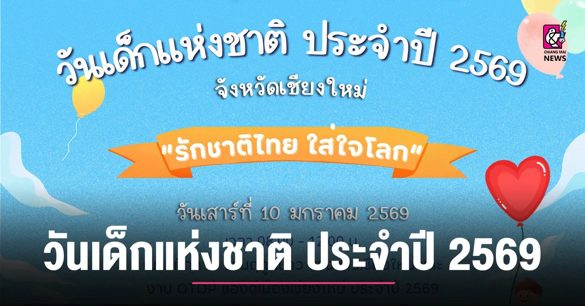 สำนักงานศึกษาธิการจังหวัดเชียงใหม่ ได้รับมอบหมายจากจังหวัดเชียงใหม่ จัดงาน วันเด็กแห่งชาติ ประจำปี 2569 จังหวัดเชียงใหม่ ในวันเสาร์ที่ 10 มกราคม 2569 เวลา 08.00 – 12.00 น. ณ เวทีกลาง งานฤดูหนาว นางสาวเชียงใหม่ และ งาน OTOP ของดีเมืองเชียงใหม่ ประจำปี 2569