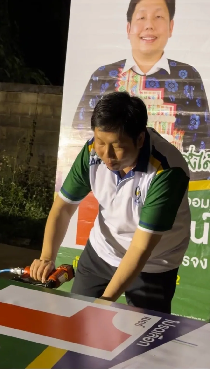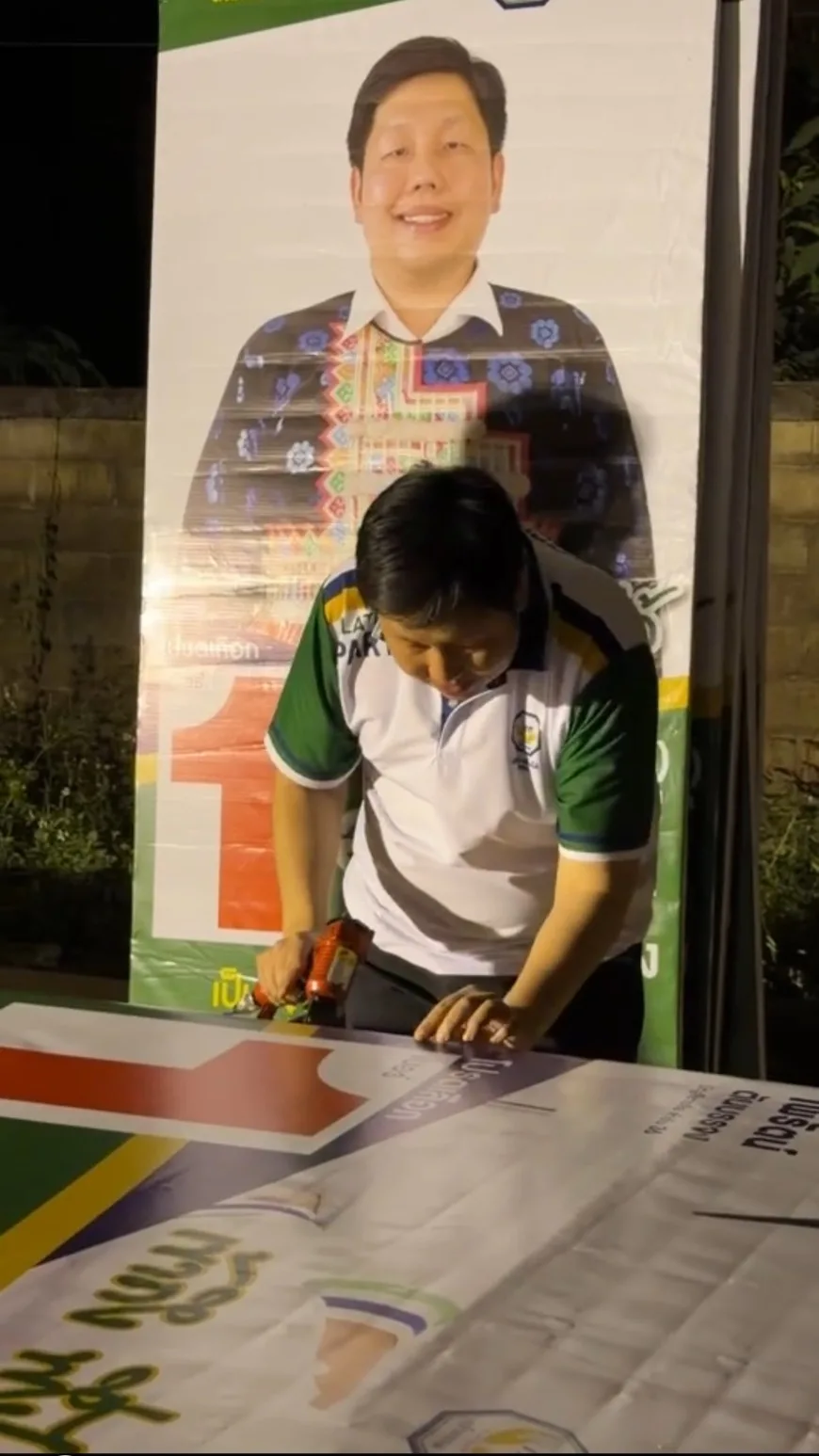 ผู้สมัคร สส.พะเยาเขต 2 โชว์ฟอร์มทำป้ายหาเสียงกับมือ เชื่อการลงมือทำครั้งนี้เสมือนการทำงานเพื่อชาวบ้าน