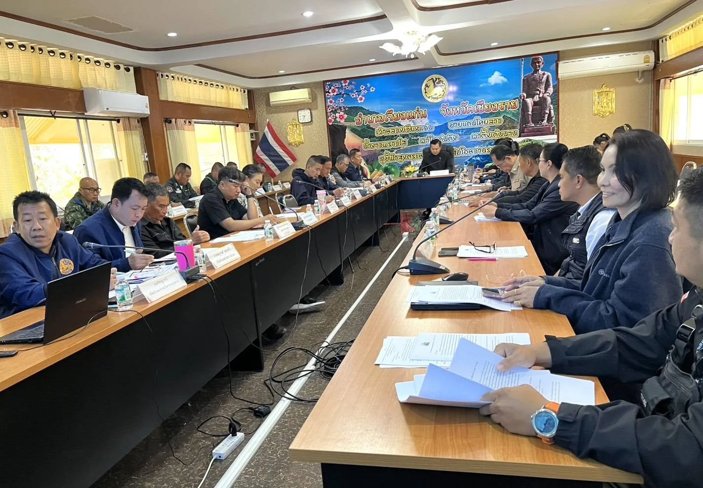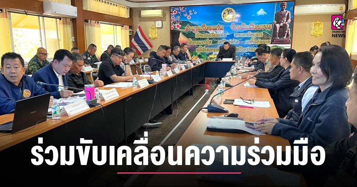 วันที่ 5-6 มกราคม 2569 สถาบันสิ่งแวดล้อมไทย หรือ TEI โดยโครงการพัฒนาความร่วมมือเมืองคู่ขนาน ไทย ลาว เมียนมา ขับเคลื่อนการจัดการและลดมลพิษหมอกควันข้ามแดน ภายใต้การสนับสนุนของสำนักงานพัฒนาการวิจัยการเกษตร (องค์การมหาชน) หรือ สวก. และโครงการกลไกความร่วมมือขับเคลื่อนแผนปฏิบัติการร่วมยุทธศาสตร์ฟ้าใส (CLEAR Sky Strategy) เพื่อลดมลพิษหมอกควันข้ามแดน ภายใต้การสนับสนุนของสำนักงานการวิจัยแห่งชาติ (วช.) ร่วมจัดประชุมหารือร่วมกับหัวหน้าส่วนราชการและผู้นำชุมชนที่สูงบริเวณสันดอยยาว ซึ่งเกิดการลุกไหม้ของไฟข้ามแดน โดยมีกลไกความร่วมมือ 4 อำเภอชายแดน (อำเภอเวียงแก่น อำเภอเชียงของ อำเภอเทิงและอำเภอขุนตาล) ร่วมกันบริหารจัดการไฟป่า และหมอกควันข้ามแดน ร่วมกับผู้นำชุมชนในพื้นที่ หน่วยงานด้านความมั่นคง ผู้นำท้องที่และท้องถิ่น กรมป่าไม้ อุทยานแห่งชาติ ภาคประชาสังคม และหน่วยงานที่เกี่ยวข้อง