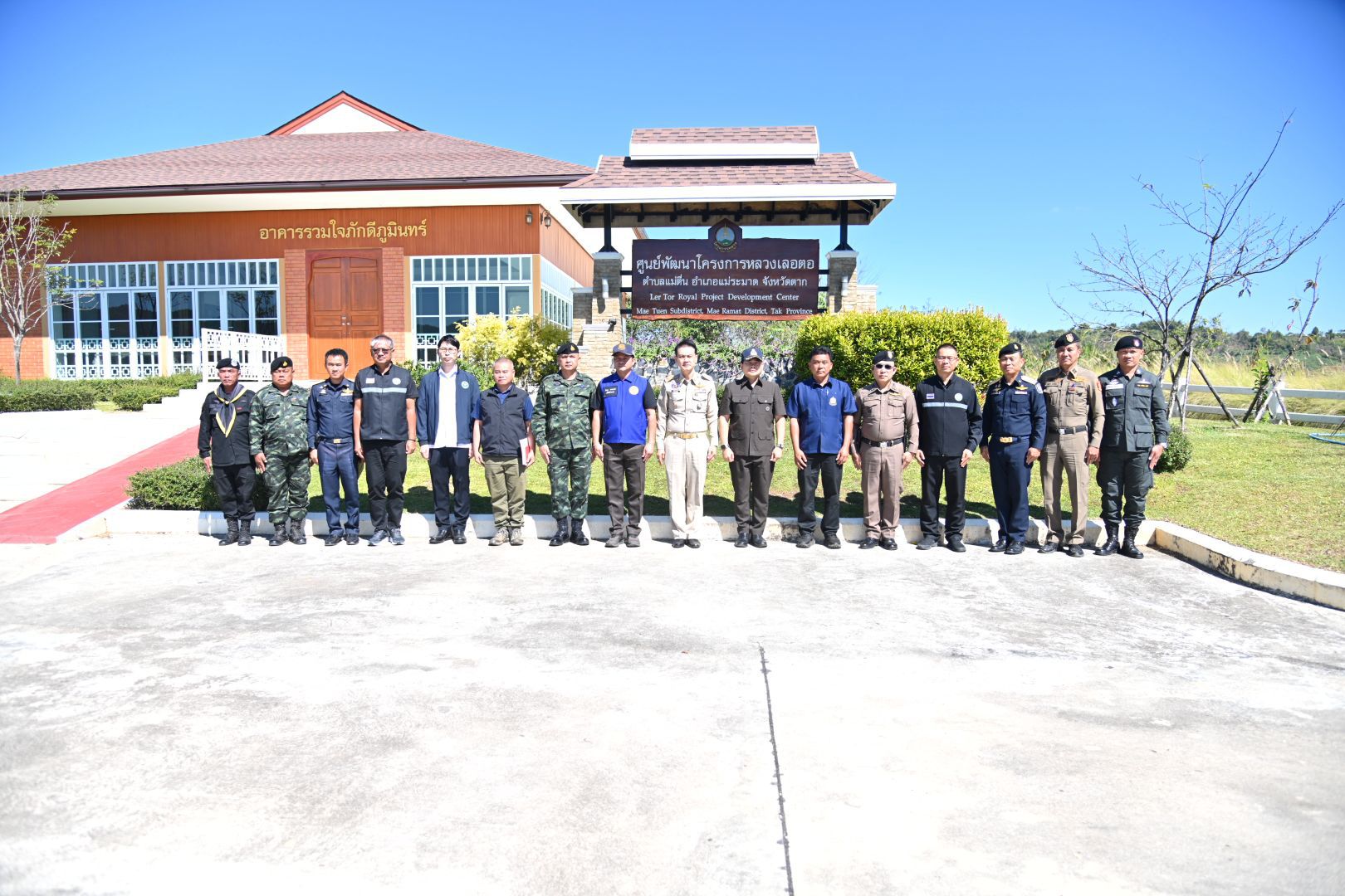 จากนั้น เลขาธิการ ป.ป.ส. ได้เดินทางไปยังศูนย์พัฒนาโครงการหลวงเลอตอ ตำบลแม่ตื่น อำเภอแม่ระมาด และได้หารือร่วมกับหัวหน้าศูนย์พัฒนาโครงการหลวงเลอตอ รองนายแพทย์สาธารณสุขจังหวัดตาก ผู้อำนวยการสำนักงาน ปปส. ภาค 6 และผู้อำนวยการสถาบันสำรวจและควบคุมพืชเสพติด (สำนักงาน ป.ป.ส.) พร้อมกับหน่วยงานภาคีในพื้นที่ เพื่อเน้นย้ำไม่ให้เกิดการลักลอบปลูกฝิ่นในพื้นที่ และร่วมกันดำเนินงานด้านการพัฒนาทางเลือก เพื่อแก้ไขปัญหายาเสพติดอย่างยั่งยืน พร้อมทั้งให้กำลังใจเจ้าหน้าที่ผู้ปฏิบัติงานในพื้นที่