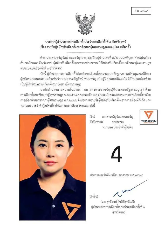 เขต 1 เบอร์4พรรคประชาชน(ปชน.)
