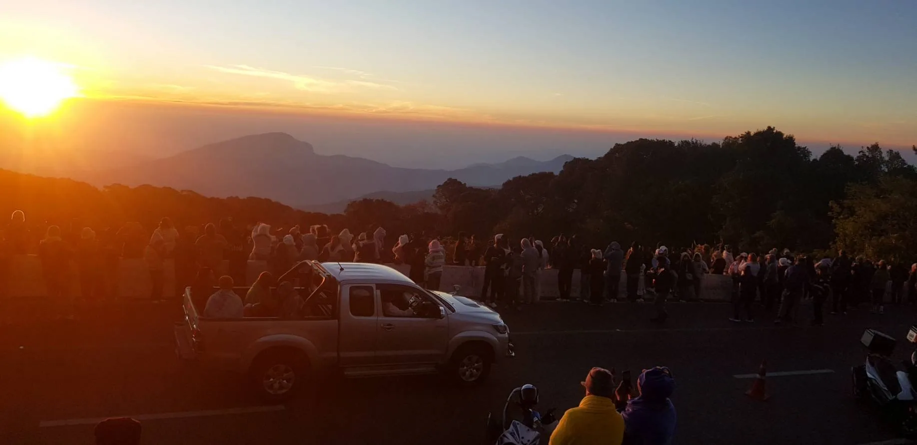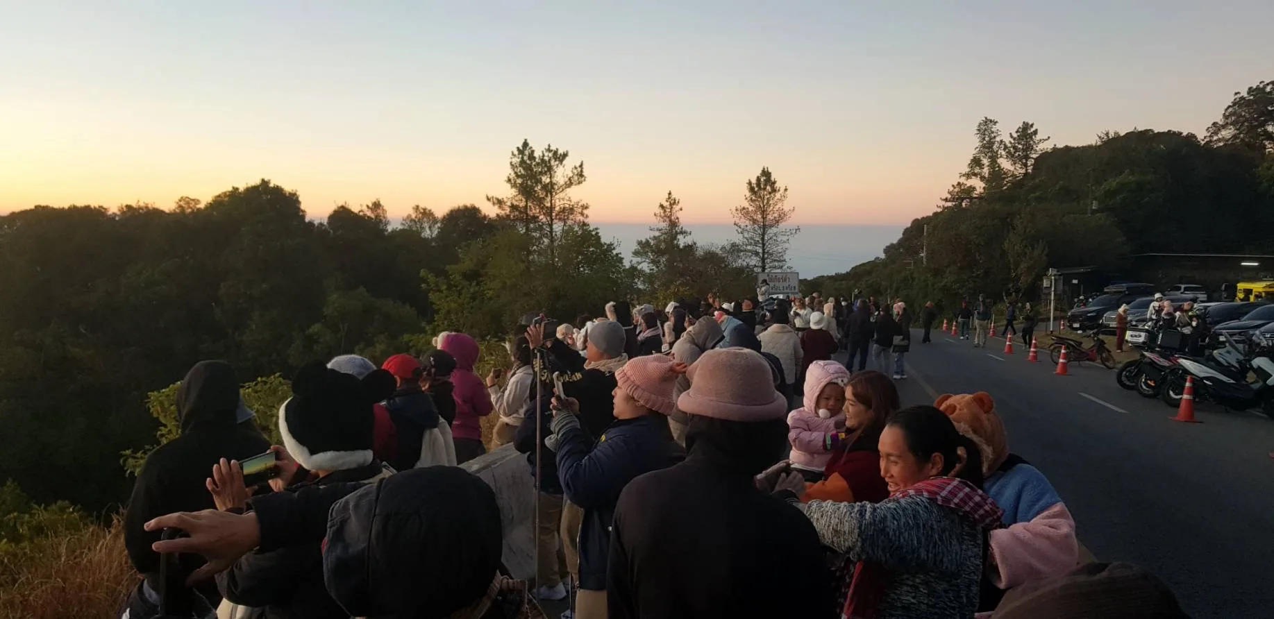 “3 องศาฯ” ที่ยอดดอยอินทนนท์ นักท่องเที่ยวยังคึกคัก ผ้าห่มคลุมกันหนาวมาชมแสงอาทิตย์ยามเช้า บันทึกภาพกันอย่างมีความสุข