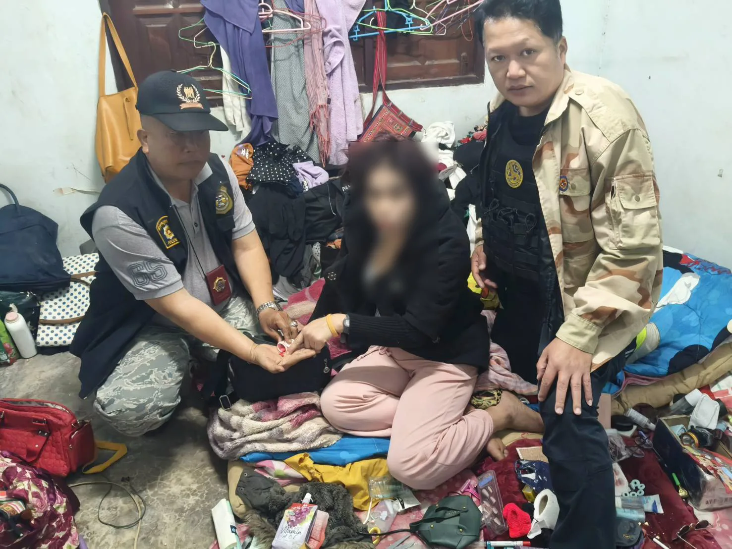 วันที่ 14 ม.ค.69 ผู้สื่อข่าวรายงานว่า เมื่อไม่กี่วันที่ผ่านมาทาง น.ส.อรอาภา โล่ห์วีระ ผู้ว่าราชการจังหวัดพะเยา นายพีรัช จันธิมา ปลัดจังหวัดพะเยา พล.ต.ต.พงษ์สวัสดิ์ ไชยบาล ผบก.ภ.จว.พะเยา ได้มีการจัดปฎิบัติการตามยุทธการพิทักษ์เมืองพะเยา ประกาศสงครามยาเสพติด 5 Action ทำ ทัน ที โดยได้มีการวางกรอบถึงเรื่องของการกวาดล้างยาเสพติดทั้งผู้ค้าและผู้เสพให้หมดสิ้นไปจาก 9 อำเภอของ จ.พะเยา ซึ่งวันนี้ช่วงรุ่งสางผ่านมา น.ส.ศิรินุช จันทาพูน นายอำเภอเชียงคำ พร้อมด้วย พ.ต.อ.ถนัด ชุ่มมะโน ผกก.สภ.เชียงคำ ได้สั่งการขานรับยุทธการสายฟ้าแล้ปนี้โดยให้ทางนายรุ่งทวี แก้วคำปา ปลัดอำเภอฝ่ายความมั่นคงพร้อมทั้งกำลัง สอ.อ.เชียงคำและกำลังจากเจ้าหน้าที่ชุด ปส.และสืบสวน สภ.เชียงคำลงพื้นที่เป้าหมายในการกวาดล้างยาเสพติดอย่างเด็ดขาด ซึ่งวันนี้เจ้าหน้าที่ได้บุกลงไปยังบ้านหนองป่าแพะ ม.3 และบ้านร่องส้าน หมู่ที่ 8 ต.ร่มเย็น อ.เชียงคำ จ.พะเยา โดยครั้งนี้สามารถจับกุมผู้ต้องหาทั้งสิ้นจำนวน 8 ราย เป็นชาย 5 ราย และหญิง 3 ราย อายุระหว่าง 30-50 ปี คาบ้านพักทั้งหมด โดยบางรายมีการวิ่งหนีตำรวจและชุดจับของปกครองอำเภอแต่ก็ต้องจนมุมในที่สุด และพบว่าทั้ง 8 รายนี้มีทั้งครอบครอง 4 ราย รวมไปถึงเสพอีก 4 รายด้วยกัน อีกทั้งยังพบของกลางเป็นยาบ้า จำนวน 65 เม็ด ทางเจ้าหน้าที่จึงได้แจ้งข้อกล่าวหา มียาเสพติดประเภท1(เมทแอมเฟตามีน)ไว้ในครอบครองโดยไม่ได้รับอนุญาตและเสพยาเสพติดประเภท1(เมทแอมเฟตามีน)โดยผิดกฎหมายก่อนจะส่งให้ทางพนักงานสอบสวนร้อยเวรดำเนินคดีตามกฎหมายกันต่อไป