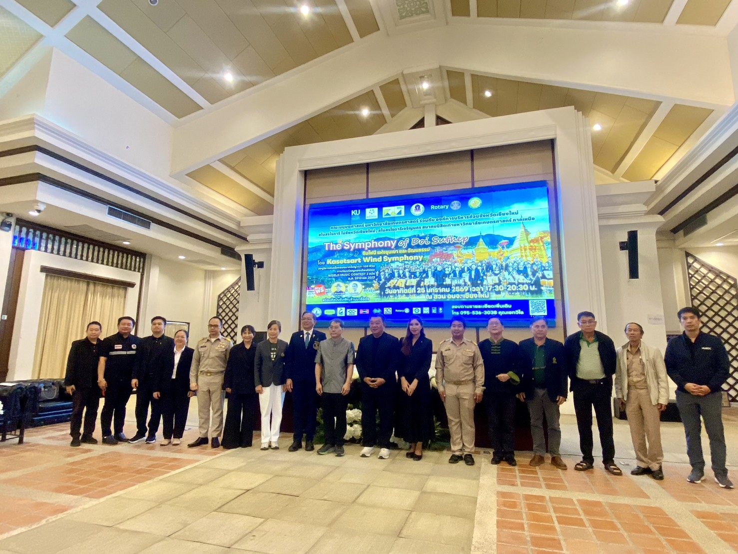 วันที่ 19 มกราคม 2569 คณะมนุษยศาสตร์ มหาวิทยาลัยเกษตรศาสตร์ องค์การบริหารส่วนจังหวัด เชียงใหม่ สโมสรโรตารี 13 สโมสรในจังหวัดเชียงใหม่ และหน่วยงานภาคเอกชน ได้ร่วมกันจัดงานแถลงข่าวการจัดงานแสดงดนตรี “The Symphony of Doi Suthep ซิมโฟนีแห่งขุนเขาและวัฒนธรรม” และ โครงการ Music for All การอบรมเชิงปฏิบัติการทางดนตรีเพื่อเยาวชน ระหว่างวันที่ 24 – 25 มกราคม 2569 โดยมีผู้ร่วมแถลงข่าว ได้แก่นายพิชัย เลิศพงศ์อดิศร นายกองค์การบริหารส่วนจังหวัดเชียงใหม่ มอบให้….. ผู้ช่วยศาสตราจารย์ รัชต ชมภูนิช รองอธิการบดีฝ่ายกิจการนิสิตและพัฒนาอย่างยั่งยืน มหาวิทยาลัยเกษตรศาสตร์ ผู้อำนวยการภาค ดร.จารุวัตร เตชะวุฒิ ผู้ว่าการภาค 3360 โรตารีสากล (ผู้แทน 13 สโมสรโรตารีภาคเหนือ) และอาจารย์บุษยพัชร อุ่นจิตติกุล อาจารย์ประจำภาควิชาดนตรี คณะมนุษยศาสตร์ มหาวิทยาลัยเกษตรศาสตร์