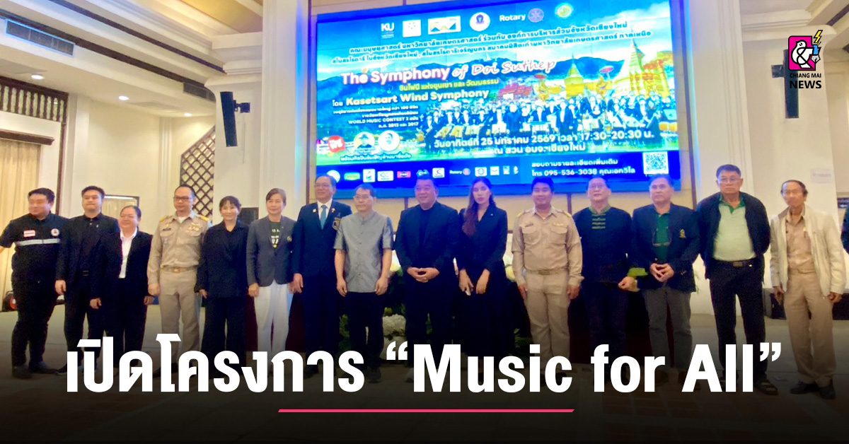 นอกจากนี้ ในวันที่ 24 มกราคม 2569 เวลา 09.00 – 17.00 น. วง Kasetsart Winds วงดุริยางค์ เครื่องลมแห่งมหาวิทยาลัยเกษตรศาสตร์ ตระหนักถึงความสำคัญของการนำองค์ความรู้ทางดนตรีสู่ชุมชน เพื่อการพัฒนาดนตรีเยาวชนในพื้นที่ภาคเหนืออย่างยั่งยืน จึงได้จัดการอบรมเชิงปฏิบัติการ โครงการ Music for All ให้แก่นักเรียนและครูดนตรี จำนวนกว่า 600 คน จาก 20 โรงเรียน ในจังหวัดเชียงใหม่และพื้นที่ ใกล้เคียง การอบรมมุ่งเน้นการสร้างแรงบันดาลใจ การเสริมสร้างทักษะ และการยกระดับมาตรฐานการ บรรเลงดนตรีประเภทวงดุริยางค์เครื่องลม ควบคู่กับการปลูกฝังแนวคิดการใช้ดนตรีเป็นพลังสร้างสรรค์สังคม โครงการดังกล่าวนับเป็นอีกหนึ่งก้าวสำคัญ ในการเสริมสร้างศักยภาพเยาวชน และร่วมกันสืบสาน เผยแพร่ และต่อยอดวัฒนธรรมดนตรีท้องถิ่น ให้เติบโตอย่างมั่นคงและยั่งยืนต่อไป