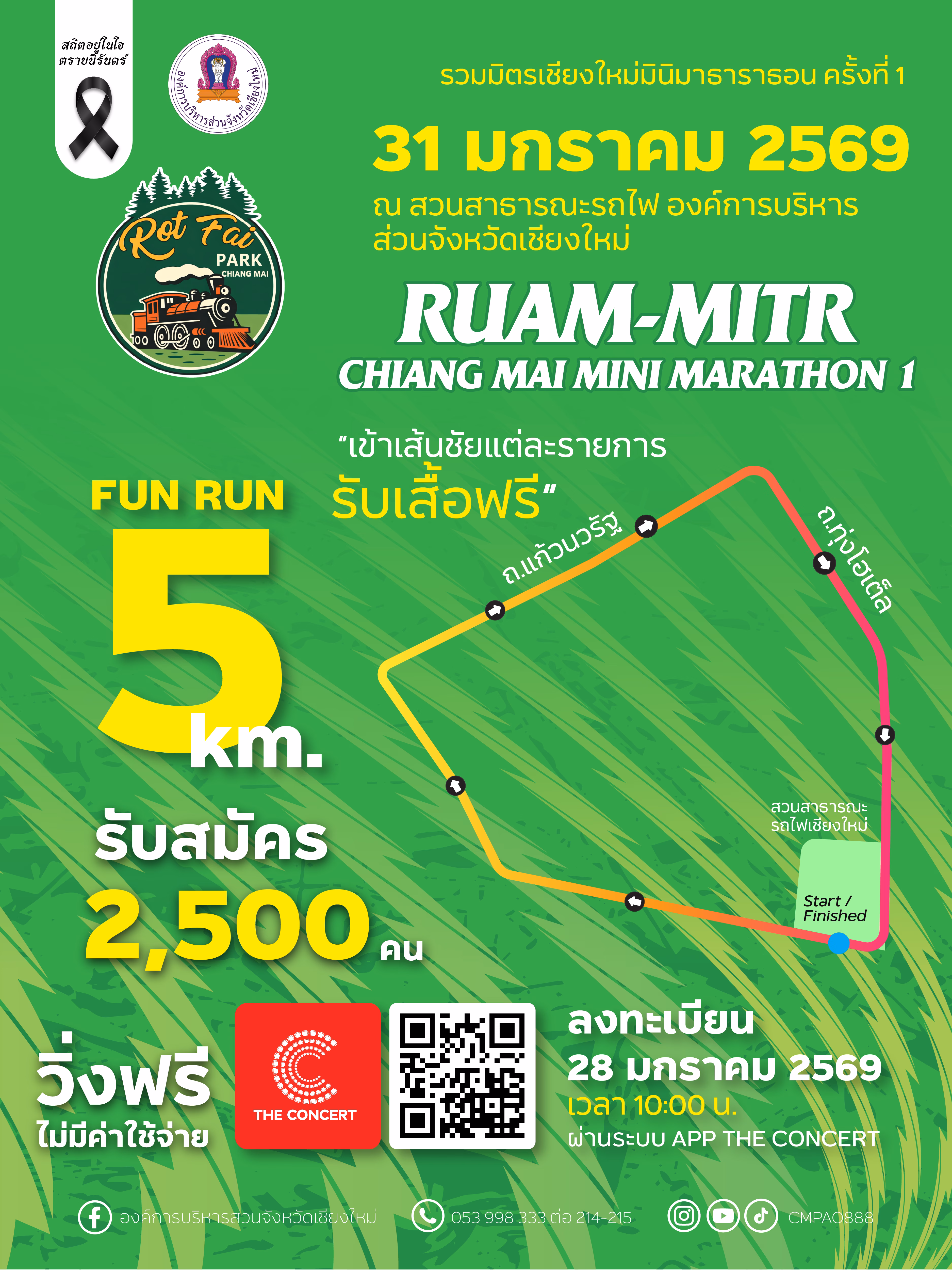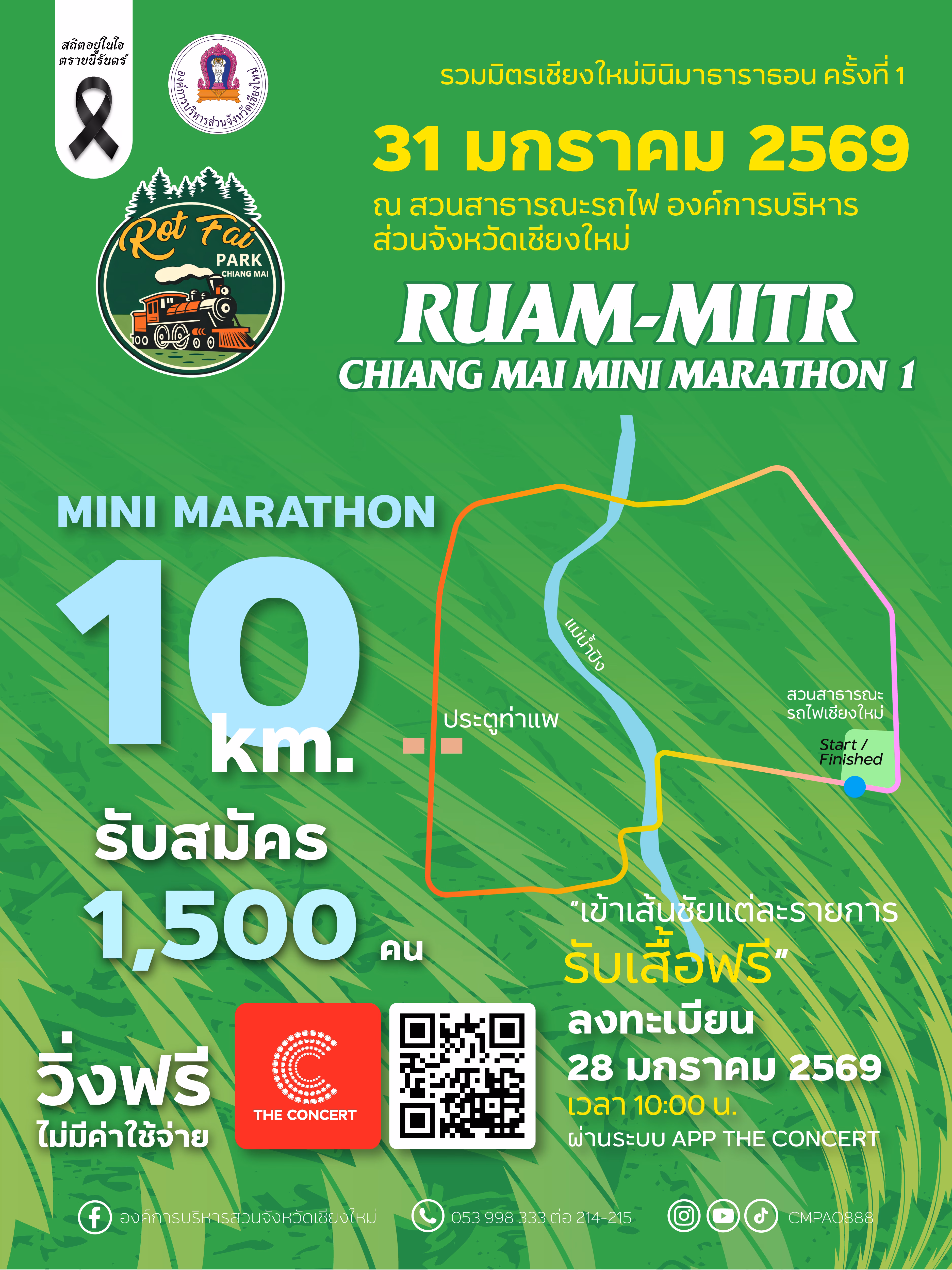 📲 สมัครพร้อมกัน: วันที่ 28 มกราคม 2569 นี้ เวลา10:00 น. ที่แอพพิเคชั่น The Concert ค้นหา “RUAM-MITR MINI MARATHON ครั้งที่ 1”