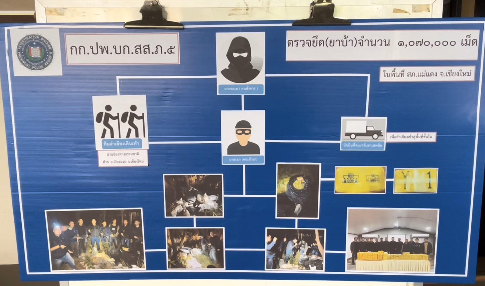 และคดีที่ 3 ทางเจ้าหน้าที่ตำรวจ สภ.แม่แตง จ.เชียงใหม่ ร่วมกับหน่วยงานที่เกี่ยวข้อง จับกุมขบวนการยาเสพติดบริเวณพื้นที่ ต.ขี้เหล็ก อ.แม่แตง จ.เชียงใหม่ หลังสืบทราบว่าจะมีการส่งมอบยาเสพติด ในบริเวณบ่อขยะ ของหมู่บ้านปางเปา จึงได้ทำการไปยังจุดตามที่สายลับแจ้งไว้ เมื่อไปถึงบ่อขยะในหมู่บ้านและได้ขับรถผ่านไป ได้สังเกตเห็นแผ่นโฟมสีขาววางอยู่ริมถนนข้างขวา ซึ่งตรงกับข้อมูลที่สายลับได้แจ้งไว้ จึงได้ลงจากรถเพื่อไปทําการตรวจสอบจากการตรวจสอบพบถุงพลาสติกสีดำจำนวน 5 ถุง ตรวจสอบภายในพบยาบ้า จํานวน 1,070,000 เม็ด จากนั้นจึงได้ทำการตรวจยึดของกลางนำส่งพนักงานสอบสวน สภ.แม่แตง จ.เชียงใหม่ เพื่อสืบสวนหาตัวผู้กระทําผิดมาดำเนินคดีตามกฎหมายต่อไป
