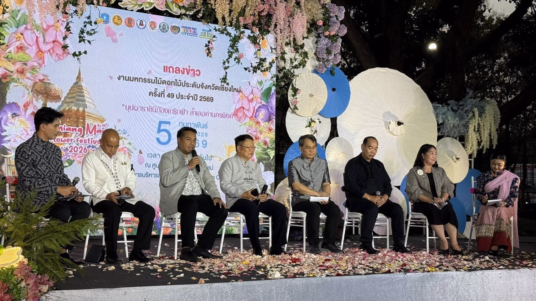 เย็นวันนี้ (5 ก.พ. 69) ที่สวนองค์การบริหารส่วนจังหวัดเชียงใหม่ บริเวณด้านหลังศูนย์ราชการจังหวัดเชียงใหม่ นายชัชวาลย์ ปัญญา รองผู้ว่าราชการจังหวัดเชียงใหม่ พร้อมด้วย นายอิทธิรัฐ สินารักษ์ ท่องเที่ยวและกีฬาจังหวัดเชียงใหม่ นายแพทย์เติมชัย เต็มยิ่งยง รองนายกองค์การบริหารส่วนจังหวัดเชียงใหม่ นายวิสาขะ ปัญญาช่วย รองนายกเทศมนตรีนครเชียงใหม่ และภาคีเครือข่ายผู้ร่วมจัดงาน ร่วมแถลงข่าวเตรียมความพร้อมการจัดงาน มหกรรมไม้ดอกไม้ประดับจังหวัดเชียงใหม่ ครั้งที่ 49 ประจำปี 2569