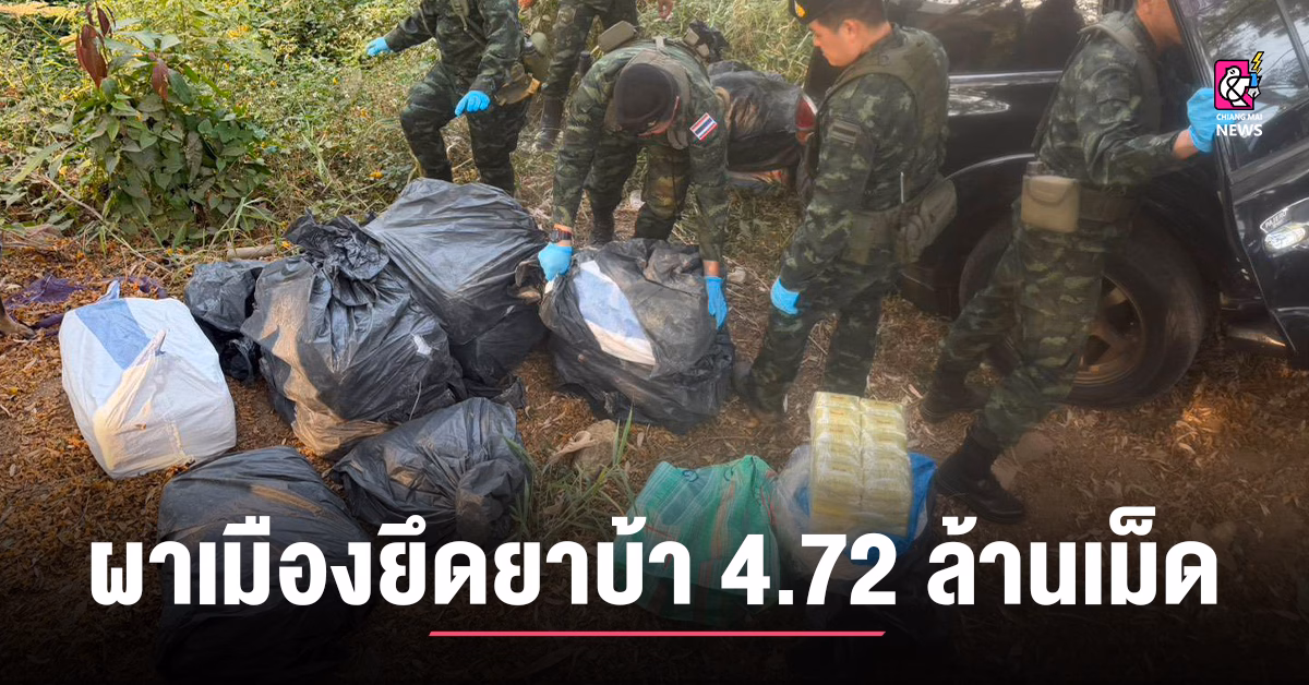 เมื่อวันที่ 9 กุมภาพันธ์ 2569 เวลา 01.00 นาฬิกา กองกำลังผาเมือง โดย กองร้อยทหารม้าที่ 3 หน่วยเฉพาะกิจทัพเจ้าตาก จัดกำลังพล จำนวน 1 ชุดปฏิบัติการ ร่วมกับ ชุดปฏิบัติการกองร้อยเคลื่อนที่เร็ว กองกำลังผาเมือง, ชุดสุนัขทหารที่ 10 กองกำลังผาเมือง ทำการเฝ้าตรวจเพื่อป้องกันและสกัดกั้นการกระทำผิดตาม พระราชบัญญัติยาเสพติด บริเวณ บ้านเหมืองแดงใต้ หมู่ที่ 1 ตำบลแม่สาย อำเภอแม่สาย จังหวัดเชียงราย ได้ตรวจพบรถยนต์ต้องสงสัย กลับรถกระทันหันก่อนถึงจุดตรวจ ประมาณ 500 เมตร ทำให้รถเสียหลักตกลงไหล่ทางถนน ตรงข้ามหน้า ฐานปฏิบัติการนเรศวร กองบังคับการหมวดทหารม้าที่ 2ฯ หน่วยจึงได้เข้าดำเนินการตรวจสอบรถยนต์คันดังกล่าว ยี่ห้อ มิตซูบิชิ ปาเจโร สีดำ หมายเลขทะเบียน 1 ขฉ 5916 กรุงเทพมหานคร โดยได้ล็อคประตูรถทิ้งไว้ ไม่พบตัวคนขับรถ ต่อมาเมื่อเวลา 08.00 นาฬิกา หน่วยจึงได้จัดกำลังพล ร่วมกับ สถานีตำรวจภูธรแม่สาย และฝ่ายปกครอง อำเภอแม่สายฯ ร่วมกันตรวจสอบรถยนต์คันดังกล่าว ตรวจพบกระสอบดัดแปลง ภายในบรรจุยาเสพติดให้โทษประเภท 1 (ยาบ้า) กระสอบละ 200,000 เม็ด จำนวน 23 กระสอบ และกระสอบละ 120,000 เม็ด จำนวน 1 กระสอบ รวมจำนวนทั้งสิ้น 4,720,000 เม็ด