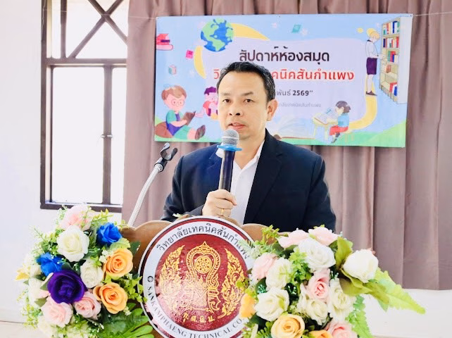 วันที่ 10 กุมภาพันธ์ 2569 วิทยาลัยเทคนิคสันกำแพง จัดกิจกรรมสัปดาห์ห้องสมุด ประจำปีการศึกษา 2568 ให้กับนักเรียนทุกระดับชั้นปี โดยนายวินัย จันทรานาค ผู้อำนวยการ ประธานในพิธี พร้อมด้วยผู้บริหาร คณะครู บุคลากรและนักเรียน นักศึกษา ร่วมกิจกรรมงานสัปดาห์ห้องสมุด ณ อาคารวิทยบริการและห้องสมุด วิทยาลัยเทคนิคสันกำแพง