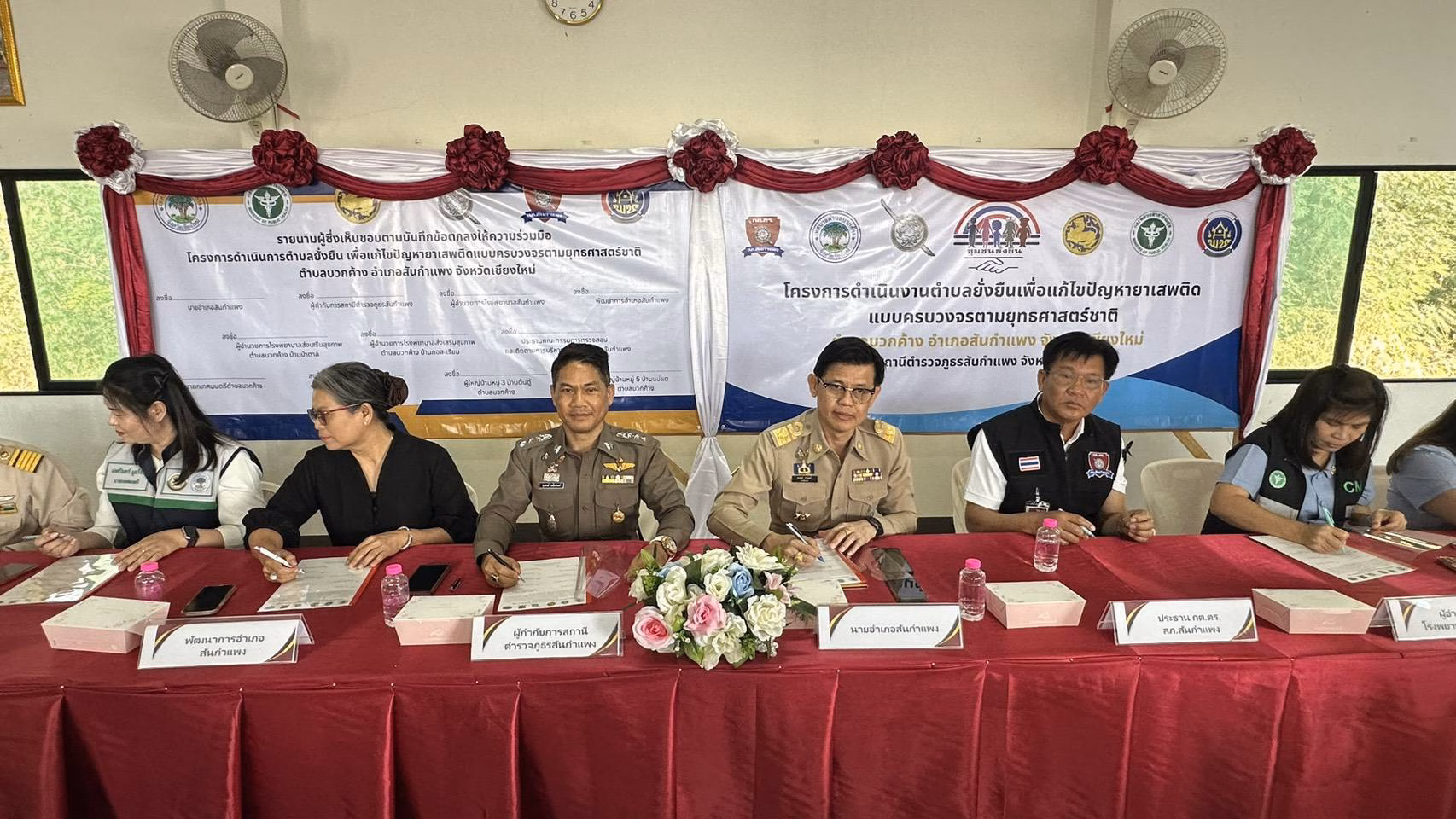 วันนี้ (11 ก.พ.2569) เวลา 10.00 น. ณ ศาลาประจำหมู่บ้านต้นดู่ ต.บวกค้าง อ.สันกำแพง จ.เชียงใหม่ ทางนายคเณศ คำนนท์ นายอำเภอสันกำแพง เชียงใหม่ เป็นประธานพิธีเปิด โดยมี พ.ต.อ.สุรมนต์ เฉลิมจันทร์ ผกก.สภ.สันกำแพง พ.ต.ท.เอกองค์ คำลือ รอง ผกก.ป.สภ.สันกำแพง สภ.สันกำแพง ,พ.ต.ท.พชรดนัย ขันทอง สวป.(ชส.) พร้อมชุดชุมชนยั่งยืน และตำรวจตู้ยามต้นดู่ ดำเนินการพิธีเปิดโครงการดำเนินงานตำบลยั่งยืน เพื่อแก้ไขปัญหายาเสพติดแบบครบวงจรตามยุทธศาสตร์ชาติ ประจำปีงบประมาณ 2569 โดยมี พร้อมด้วยภาคีเครือข่าย นายกเทศมนตรีตำบลบวกค้าง, พัฒนาการอำเภอสันกำแพง, สาธารณสุขอำเภอสันกำแพง, ผอ.รพ.สต.ฯ, กำนัน,ผู้ใหญ่บ้านเป้าหมาย ร่วมลงนามบันทึกข้อตกลงความร่วมมือ(MOU) และ MOU ครัวเรือนประชาชนบ้านต้นดู่ ม.3 และบ้านแม่แต ม.5 ต.บวกค้าง อ.สันกำแพง เข้าร่วมพิธีเปิดโครงการฯ เพื่อขับเคลื่อนโครงการดำเนินงานตำบลยั่งยืนฯให้ประสบความสำเร็จตามวัตถุประสงค์ของโครงการ ในครั้งนี้ต่อไป