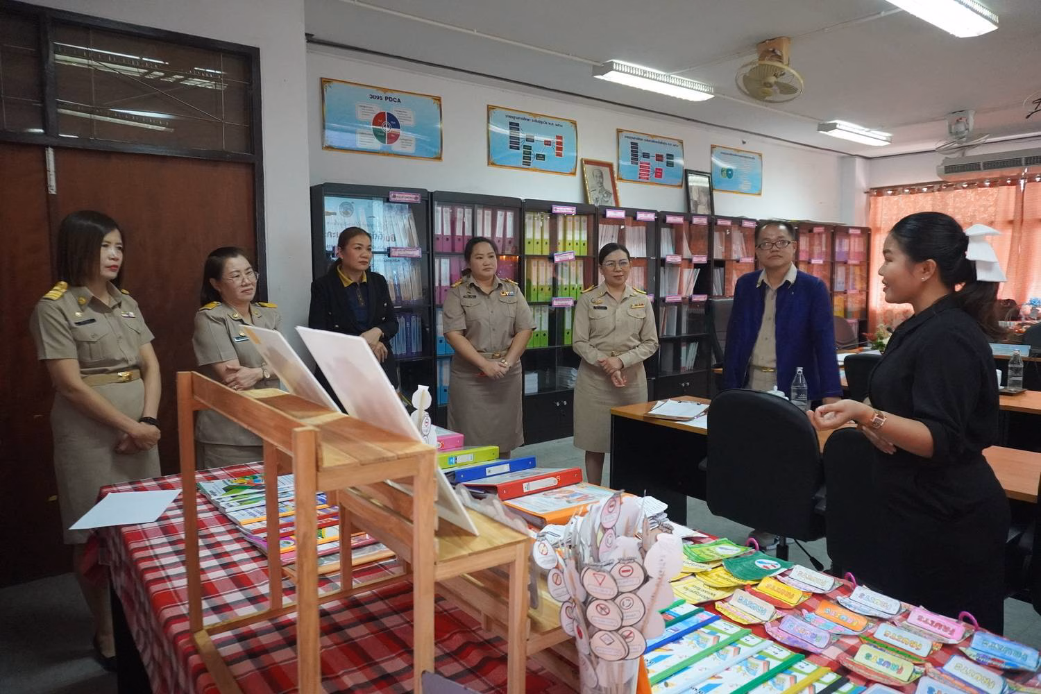 ในการนี้ นางพิลาสินี ถาริยะวงศ์วนิช ผู้อำนวยการโรงเรียน พร้อมด้วยคณะครูกลุ่มสาระการเรียนรู้ภาษาต่างประเทศ ร่วมให้การต้อนรับและนำเสนอผลการดำเนินงาน