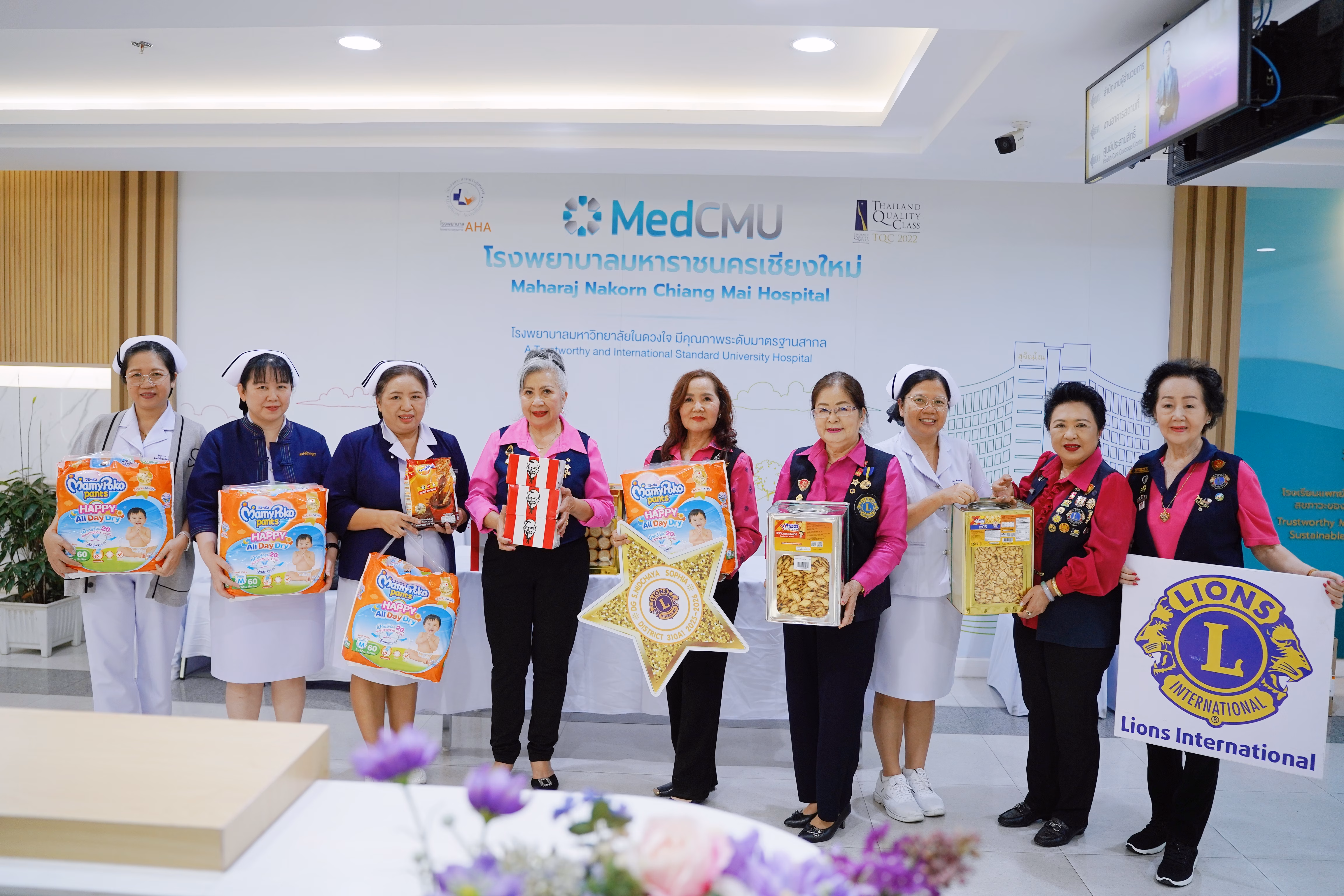 คุณยสวันต์ รอดอารีย์ หัวหน้าหอผู้ป่วยกุมารเวชกรรม 5 พร้อมคณะ รับมอบสิ่งของอุปโภคและบริโภค ให้แก่ หอผู้ป่วยกุมารเวชกรรม 5 งานการพยาบาลผู้ป่วยกุมารเวชศาสตร์ โรงพยาบาลมหาราชนครเชียงใหม่ เพื่อผู้ป่วยเด็กโรคเลือดโรคมะเร็ง