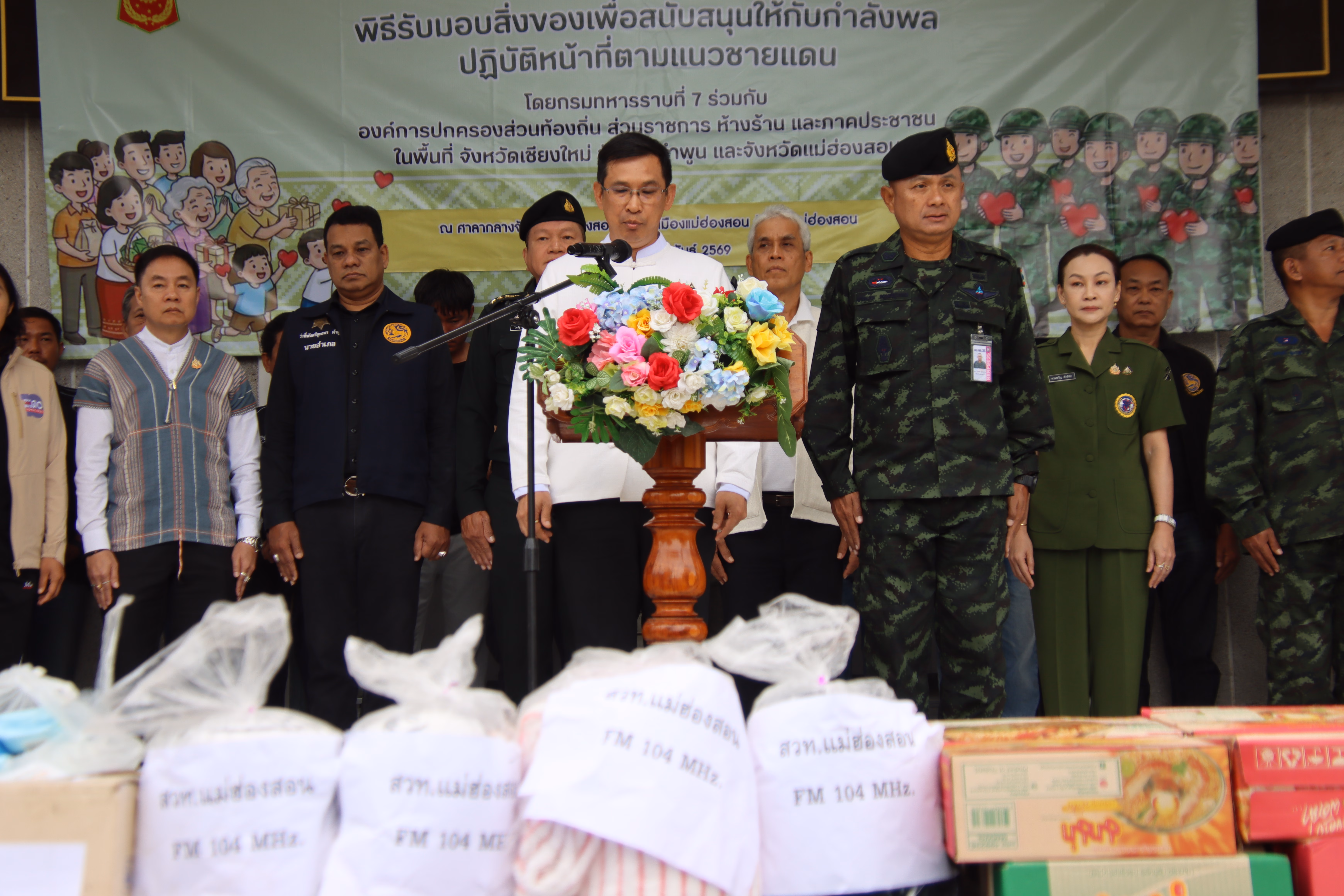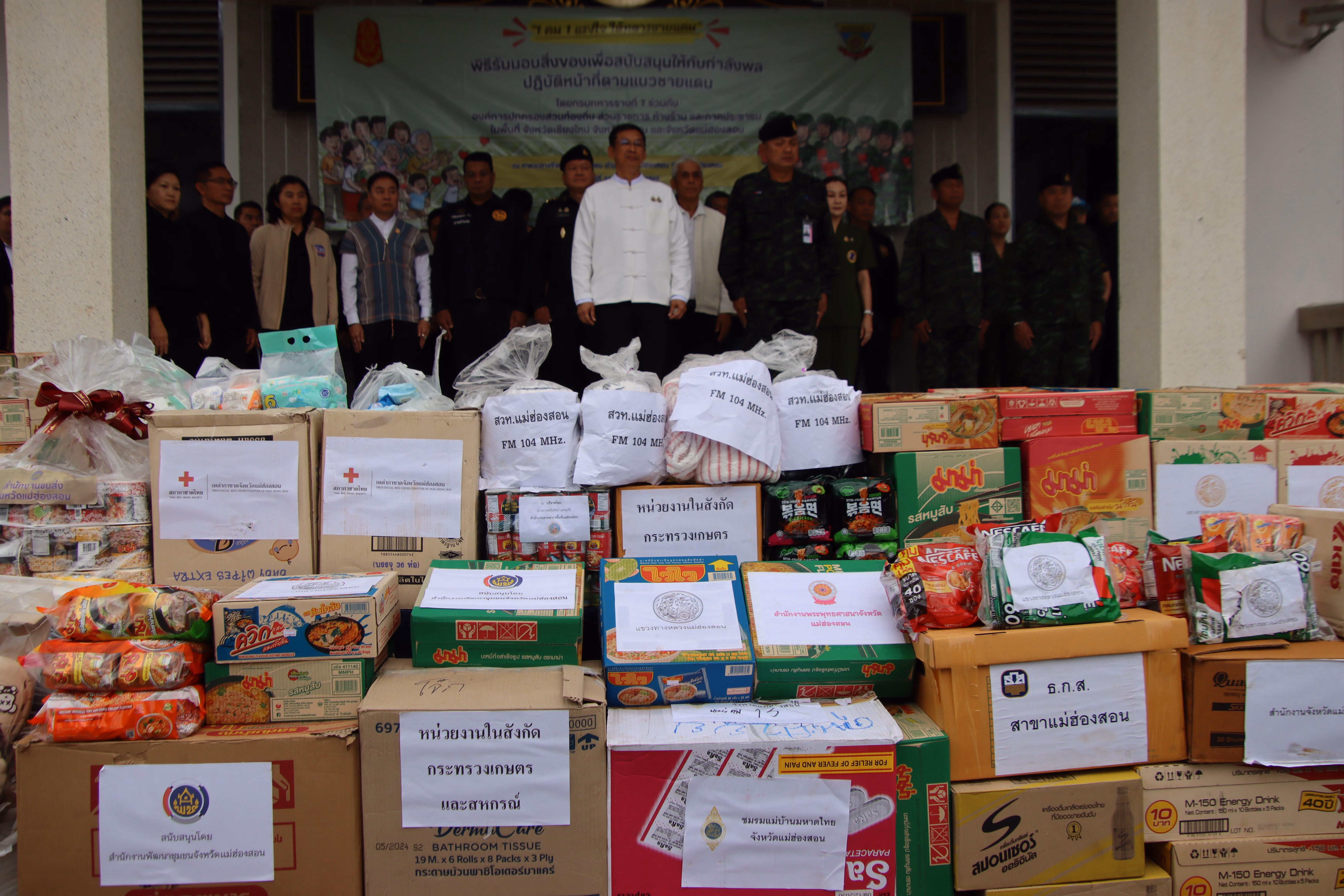 เมื่อวันที่ 27 ก.พ. 69 เวลา 0830 น. ที่บริเวณหน้าศาลากลางจังหวัดแม่ฮ่องสอน (หลังเก่า) พลโท ชายแดน กฤษณสุวรรณ แม่ทัพน้อยที่ 3 กองทัพภาคที่ 3 รับมอบสิ่งของเครื่องอุปโภคบริโภคจากนายวิบูรณ์ แววบัณฑิต ผู้ว่าราชการจังหวัดแม่ฮ่องสอน เพื่อส่งต่อให้ทหารชายแดนไทยที่อยู่แนวหน้าชายแดนไทย-กัมพูชา ในพื้นที่ภาคอีสาน โดยมีกาชาดจังหวัดแม่ฮ่องสอน หัวหน้าส่วนราชการเข้าร่วมในการรับส่งมอบสิ่งของดังกล่าว