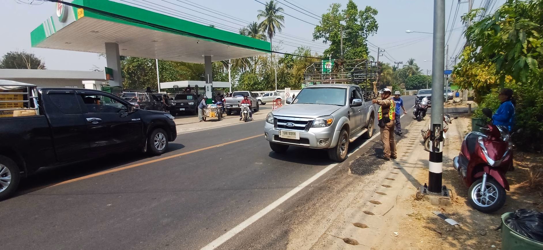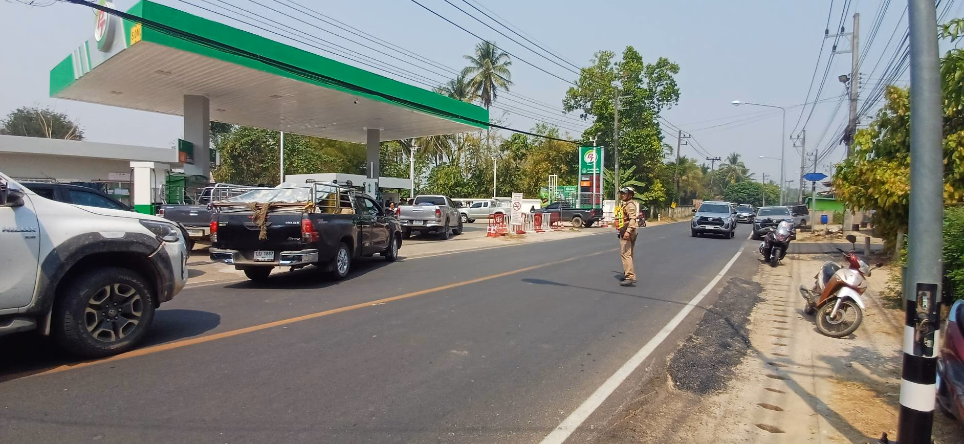 ตำรวจจัดกำลังดูแลปั๊มน้ำมัน ด้าน สถานีตำรวจภูธรพบพระ ภายใต้การสั่งการของ พันตำรวจเอก อนุสรณ์ ดังก้อง ผู้กำกับการ สภ.พบพระ ได้จัดเจ้าหน้าที่ตำรวจจราจรอำนวยความสะดวกและจัดระเบียบการจราจรบริเวณสถานีบริการน้ำมัน พร้อมเพิ่มความเข้มงวดตรวจสอบการกระทำผิดกฎหมาย และกวดขันการลักลอบขนน้ำมันตามแนวชายแดน
