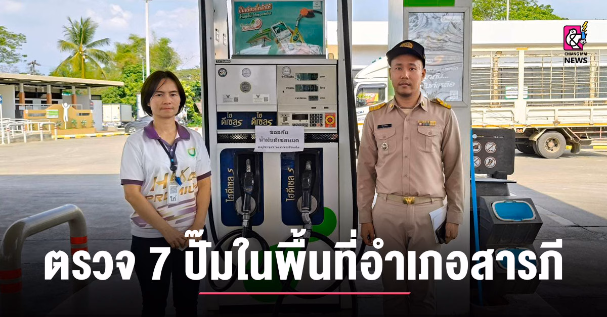 วันที่ 16 มีนาคม 2569 เวลา 13:00 น. ถึง 15:00 น. นายเอนก ทาสัก นายอำเภอสารภี และว่าที่ร้อยตรีเดชพงศ์ นาคเสวี ปลัดอำเภอหัวหน้ากลุ่มงานบริหารงานปกครอง มอบหมายให้ นายปฐวี ยังน้อย ปลัดอำเภอฝ่ายความมั่นคง ตรวจสอบสถานีบริการน้ำมันเชื้อเพลิงและสถานที่เก็บน้ำมันเชื้อเพลิงในพื้นที่อำเภอสารภี จำนวน 7 แห่ง