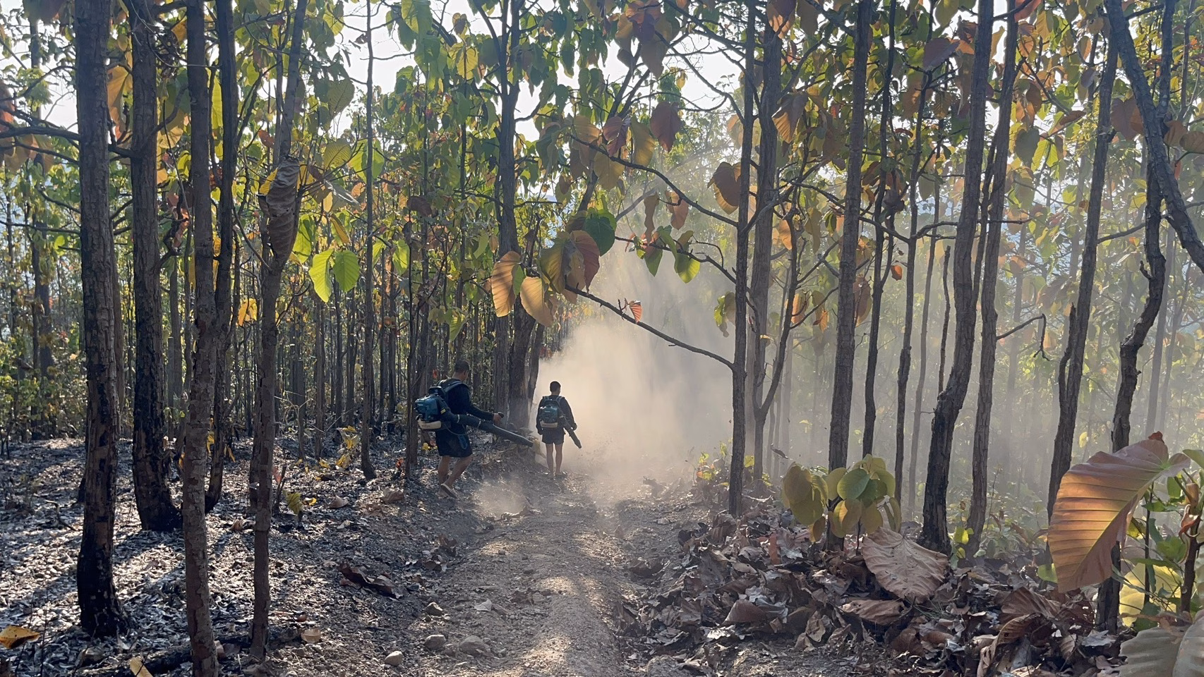 จากนั้น ทีมงาน “ส้มสู้ไฟ” ร่วมกับเทศบาลตำบลน้ำแพร่พัฒนา ได้นำอากาศยานไร้คนขับ (โดรน) บินตรวจสอบพื้นที่ซ้ำ เพื่อยืนยันว่าไฟได้ดับสนิทแล้ว โดยพบพื้นที่ได้รับความเสียหายในเขตป่าสงวนแห่งชาติแม่ท่าช้าง–แม่ขนิน ประมาณ 20–25 ไร่ โดยมีหน่วยงานร่วมบูรณาการปฏิบัติการดับไฟในพื้นที่ รวมจำนวน 17 นาย ประกอบด้วยชุดสิงห์ไฟตำบลน้ำแพร่ เจ้าหน้าที่ทหารจากมณฑลทหารบกที่ 33 และเทศบาลตำบลน้ำแพร่พัฒนา