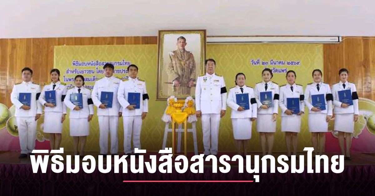 เมือวันที่ 23 มีนาคม 2569 เวลา 09.00 น. จังหวัดแพร่ โดยสำนักงานจังหวัดแพร่ ร่วมกับสำนักงานศึกษาธิการจังหวัดแพร่ จัดพิธีมอบหนังสือสารานุกรมไทยสำหรับเยาวชน โดยพระราชประสงค์ในพระบาทสมเด็จพระบรมชนกาธิเบศมหาภูมิพลอดุลยเดชมหาราช บรมนาถบพิตร เล่ม 45 ฉบับพระราชทาน จำนวน 66 เล่ม และสารานุกรมไทยสำหรับเยาวชนฯ ฉบับการ์ตูน จำนวน 40 เล่ม เพื่อรำลึกถึงพระมหากรุณาธิคุณพระบาทสมเด็จพระบรมชนกาธิเบศมหาภูมิพลอดุลยเดชมหาราช บรมนาถบพิตร และจัดกิจกรรมสร้างเสริมนิสัยรักการอ่านสารานุกรมไทยสำหรับเยาวชน