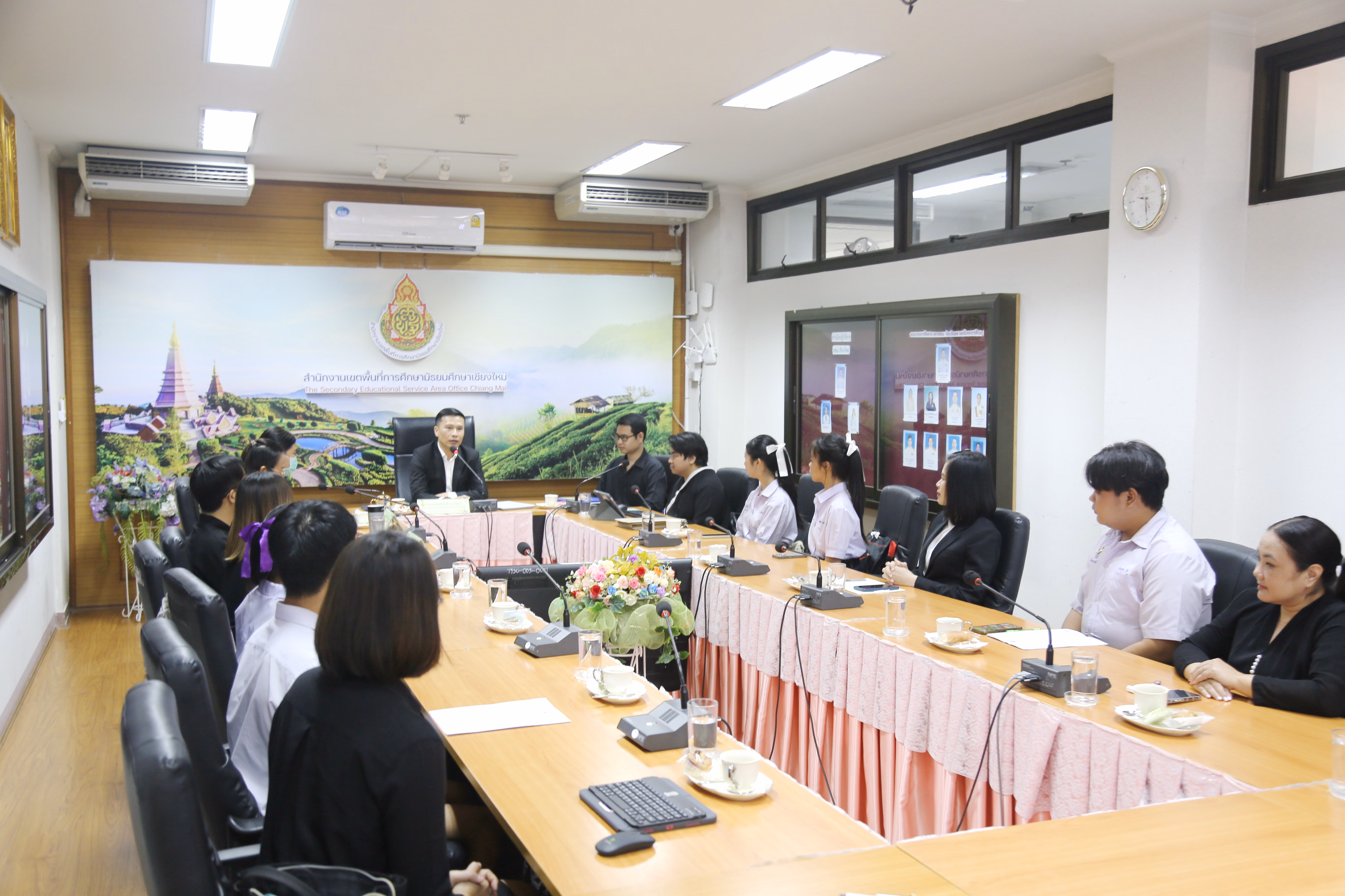 วันที่ 23 มีนาคม 2569 นายเทอดเกียรติ ยามโสภา ผู้อำนวยการสำนักงานเขตพื้นที่การศึกษามัธยมศึกษาเชียงใหม่ เป็นประธานการประชุมชี้แจงแนวทางการดำเนินโครงการส่งเสริมการมีรายได้ให้แก่นักเรียน (ทุนแลกงาน) ประจำปี 2569 ของสำนักงานคณะกรรมการการศึกษาขั้นพื้นฐาน พร้อมปฐมนิเทศนักเรียนและหน่วยงานราชการที่เข้าร่วมโครงการ ก่อนเริ่มปฏิบัติงานจริง ณ ห้องประชุม 1 ชั้น 4 สำนักงานเขตพื้นที่การศึกษามัธยมศึกษาเชียงใหม่