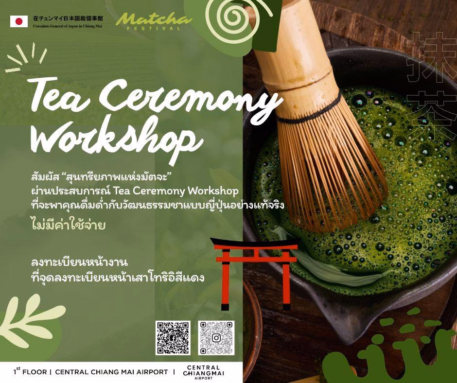 สถานกงสุลใหญ่ญี่ปุ่น ณ นครเชียงใหม่ เตรียมจัดงาน Matcha Festival ในวันเสาร์ที่ 28 และวันอาทิตย์ที่ 29 มีนาคม 2569 เวลา 10.00 – 21.00 น. ณ ลานกิจกรรม ชั้น 1 ศูนย์การค้า Central Chiang Mai Airport เพื่อเผยแพร่เสน่ห์ของมัตจะจากประเทศญี่ปุ่นสู่ประชาชนในจังหวัดเชียงใหม่ พร้อมทั้งส่งเสริมภาพลักษณ์วัฒนธรรมญี่ปุ่น และสร้างเครือข่ายความร่วมมือทั้งด้านวัฒนธรรมและธุรกิจร่วมกับหน่วยงานท้องถิ่น ผู้ประกอบการร้านคาเฟ่ และกลุ่มเยาวชน ภายใต้บรรยากาศญี่ปุ่นร่วมสมัยที่ผสมผสานกับเอกลักษณ์ของเชียงใหม่อย่างลงตัว