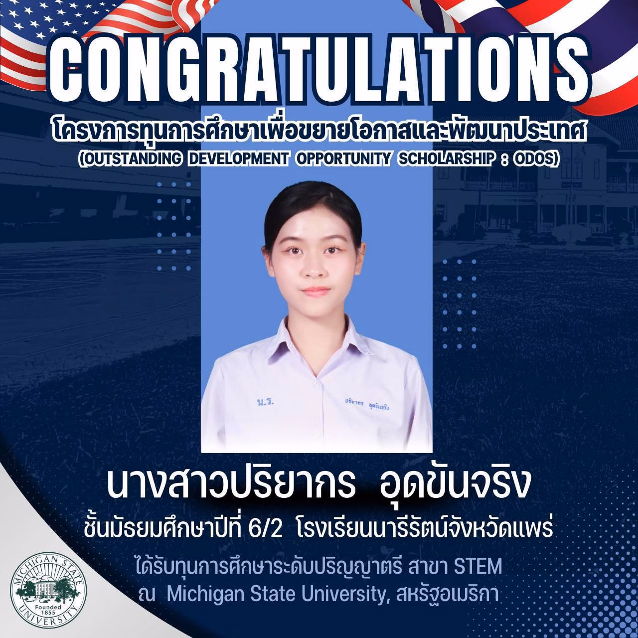 ส่องประวัติ น้องแคชเชียร์ น.ส.ปริยากร อุดขันจริง นักเรียน รร.นารีรัตน์ จ.แพร่ ผู้ได้รับทุน ODOS