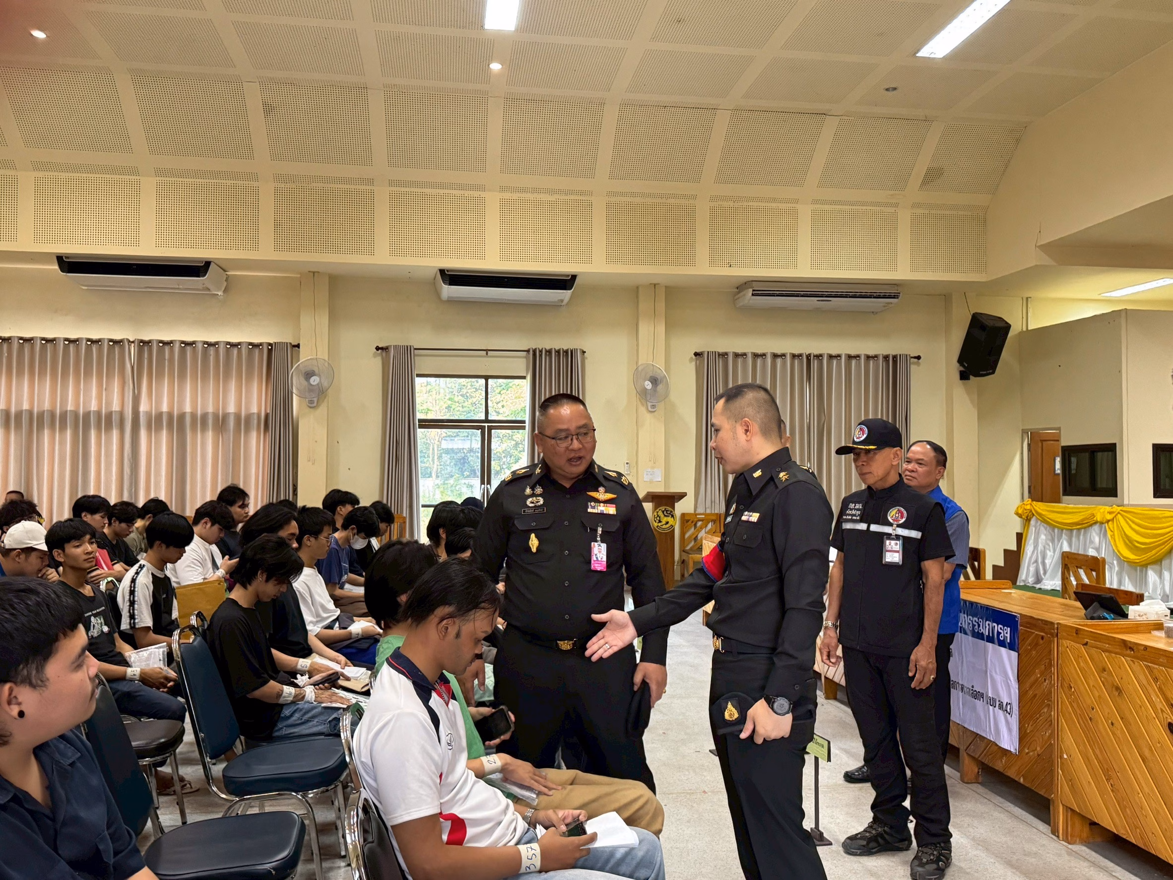 ลำพูน – ชายไทยที่มีคุณสมบัติทยอยเข้ารายงานตัว ในการตรวจเลือกทหารกองเกินเข้ารับราชการทหารกองประจำการ ประจำปี 2569 ในเขตพื้นที่อำเภอเมืองลำพูน จังหวัดลำพูน พร้อมจับใบดำ-ใบแดง ท่ามกลางการให้กำลังใจของครอบครัวฯ
