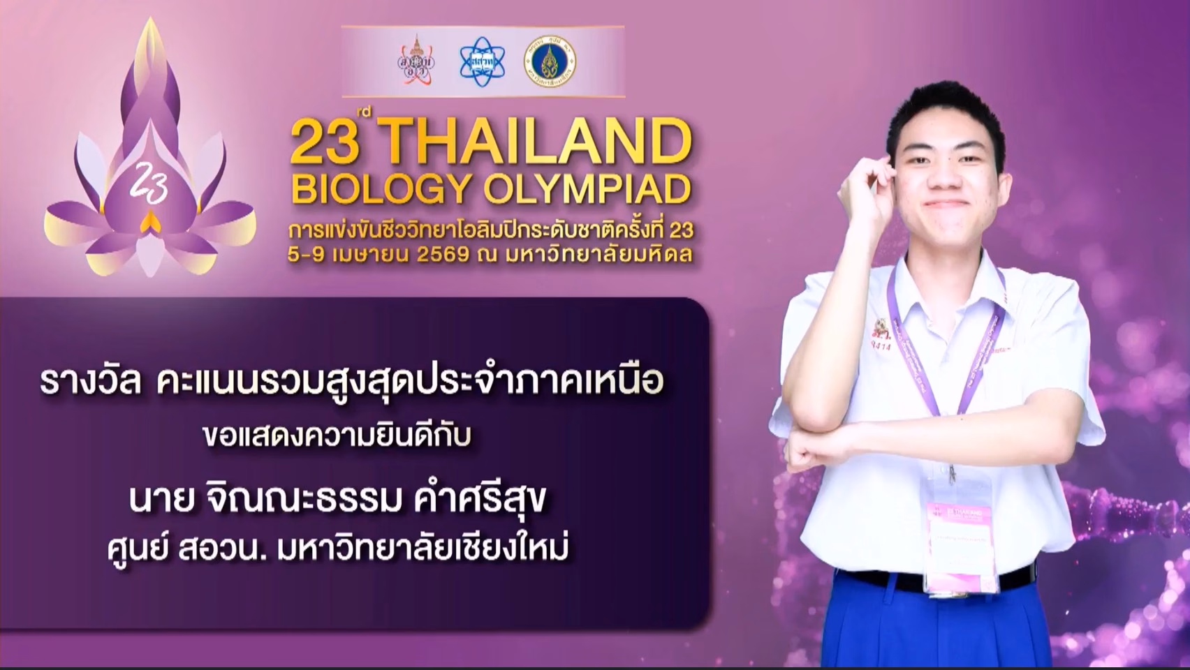 ที่ได้รับเหรียญรางวัลจากการแข่งขันชีววิทยาโอลิมปิกระดับชาติ ครั้งที่ 23 คณะวิทยาศาสตร์ มหาวิทยาลัยมหิดล