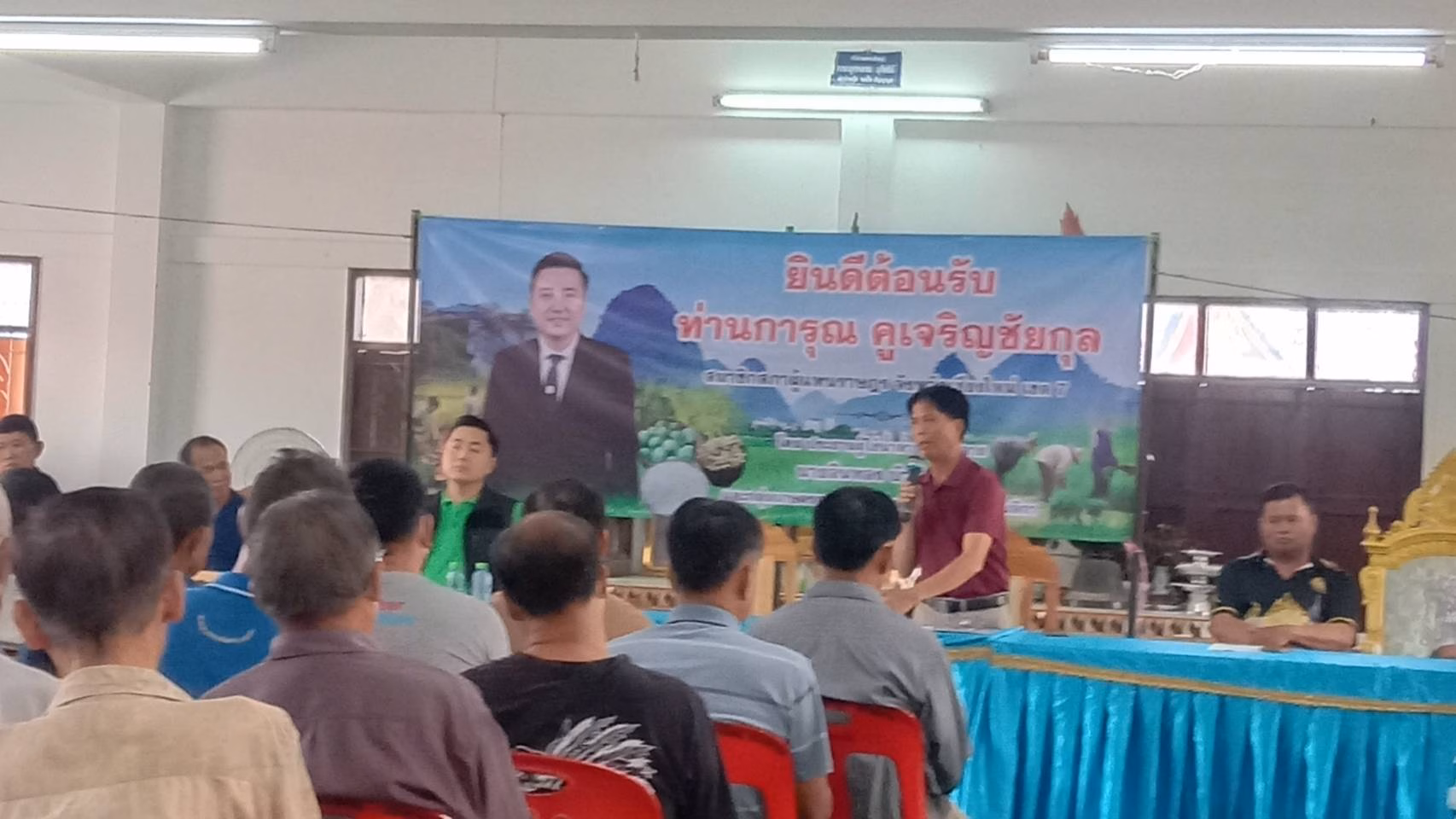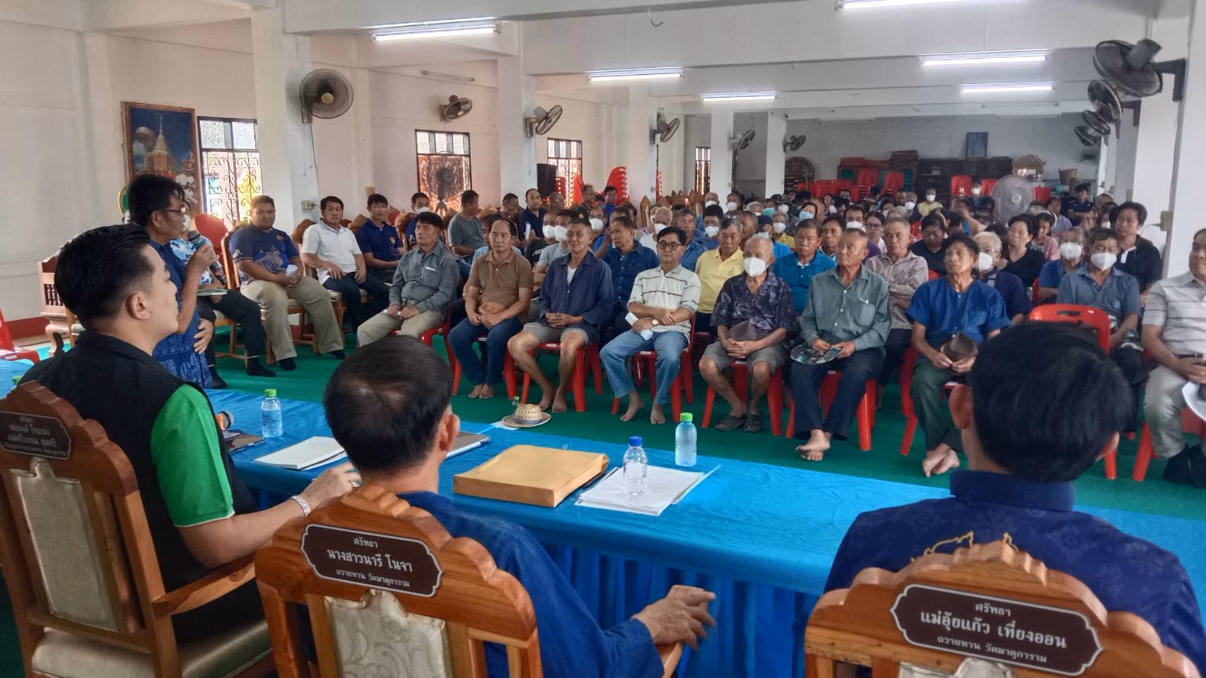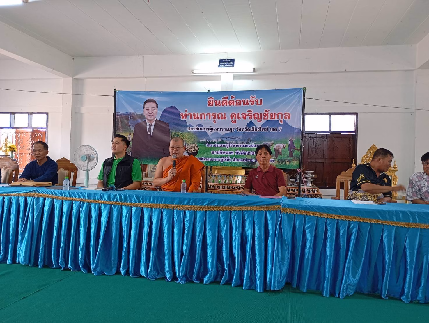 ทั้งนี้ที่ประชุมประกอบไปด้วยกำนัน ผู้ใหญ่บ้านทั้ง 3 ตำบลของแม่อายคือ ต.มะลิกา ต.ท่าตอน ต.แม่อายและชาวนาในพื้นที่ ต.แม่อาย และเชิญแกนนำชาวนา ต.แม่สาว มีนายเสถียร มณีผ่อง พ.ต.อ.ทักษิน บุญรอด,นายสมศัดิ์ เขื่อนแก้ว นายนิคม ตันจินะ สมาชิกสภาเกษตรจังหวัดเชียงใหม่ เข้าร่วมประชุมด้วย