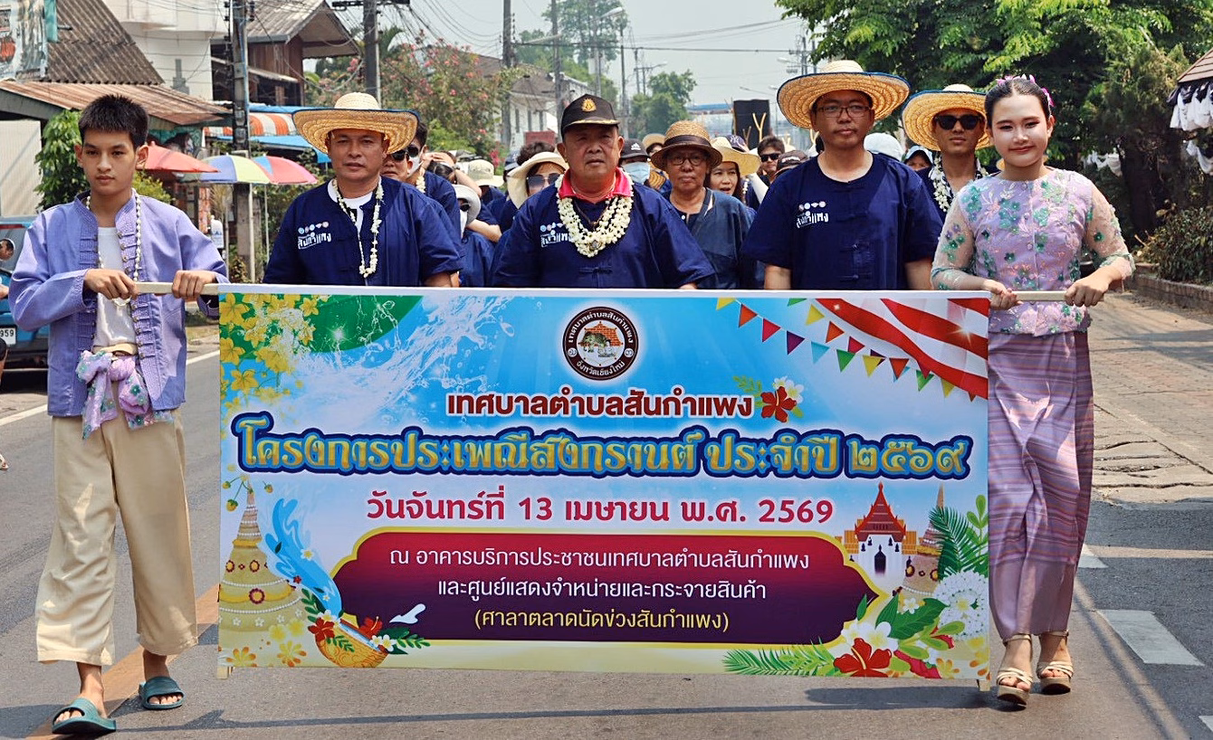 วันที่ 13 เมษายน 2569 นายชาครีย์ ขัติรัตน์ นายกเทศมนตรีตำบลสันกำแพงเชียงใหม่ นำทีมคณะผู้บริหาร พร้อมด้วยนายอดิเรก ขุนคงมี ประธานสภาเทศบาลตำบลสันกำแพง นำทีมสมาชิกสภาเทศบาล, นายสุพจน์ แสงฉาย ปลัดเทศบาลตำบลสันกำแพง รองปลัดเทศบาล หัวหน้าส่วนราชการ ข้าราชการ เจ้าหน้าที่เทศบาล จัดกิจกรรมงานสงกรานต์ ประจำปี 2569 ร่วมกับทีมงานสภาเด็กและเยาวชนเทศบาลตำบลสันกำแพง และผู้นำชุมชนในเขตเทศบาลตำบลสันกำแพงทั้ง 22 ชุมชน
