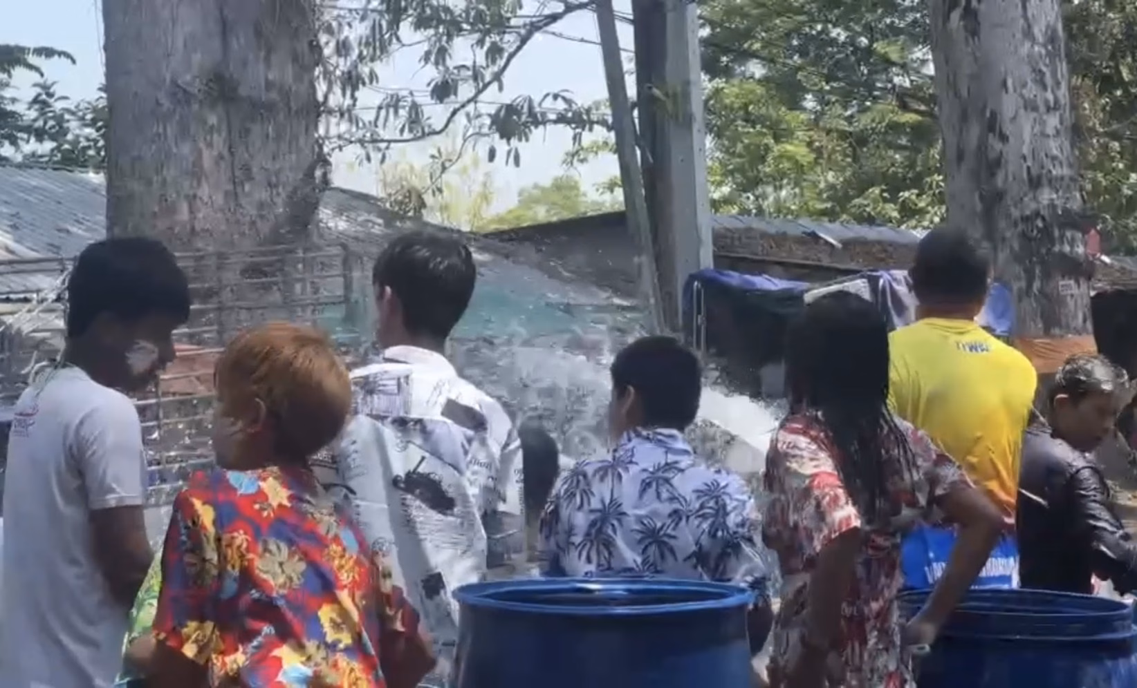 ขณะที่บรรยากาศที่บริเวณถนนสายต้นยาง ซึ่งเป็นอีกจุดที่มีประชาน พากันออกมาเล่นสาดน้ำกันอย่างสนุกสนานตลอดทั้งสาย พบว่าในวันนี้ ยังคงมีประชานพากันนั่งรถกระบะ และตั้งจุดเล่นน้ำกันอย่างเนืองแน่นตั้งแต่ช่วงสาย โดยประชาชนส่วนใหญ่ทั้งวัยรุ่นหนุ่มสาว ยังคงออกมามาเล่นที่ถนนสายนี้ตลอดทั้งสาย