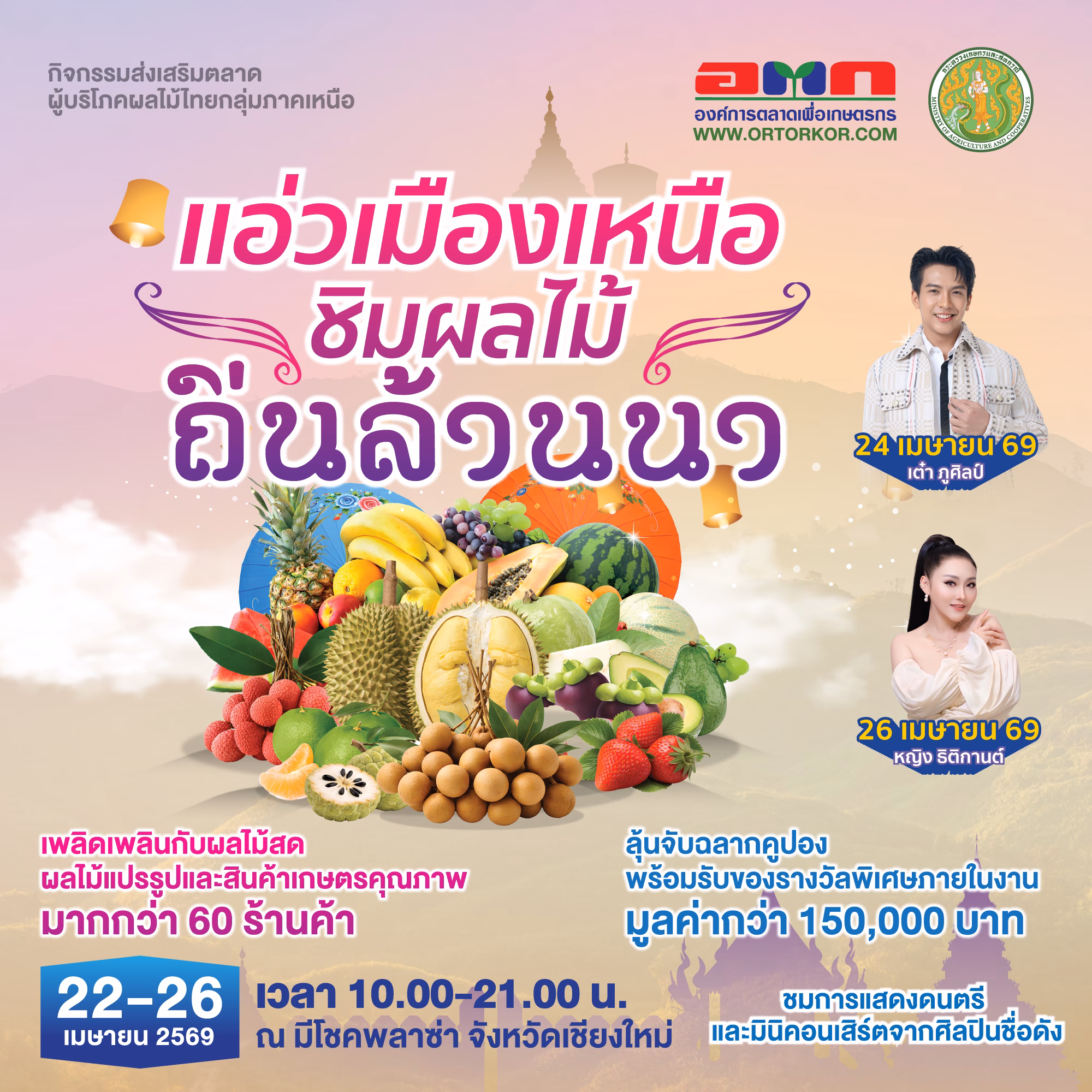 องค์การตลาดเพื่อเกษตรกร (อ.ต.ก.) ขอเชิญทุกท่านร่วมสัมผัสประสบการณ์แห่งรสชาติและคุณภาพ ในงาน “แอ่วเมืองเหนือ ชิมผลไม้ ถิ่นล้านนา” 🍍✨