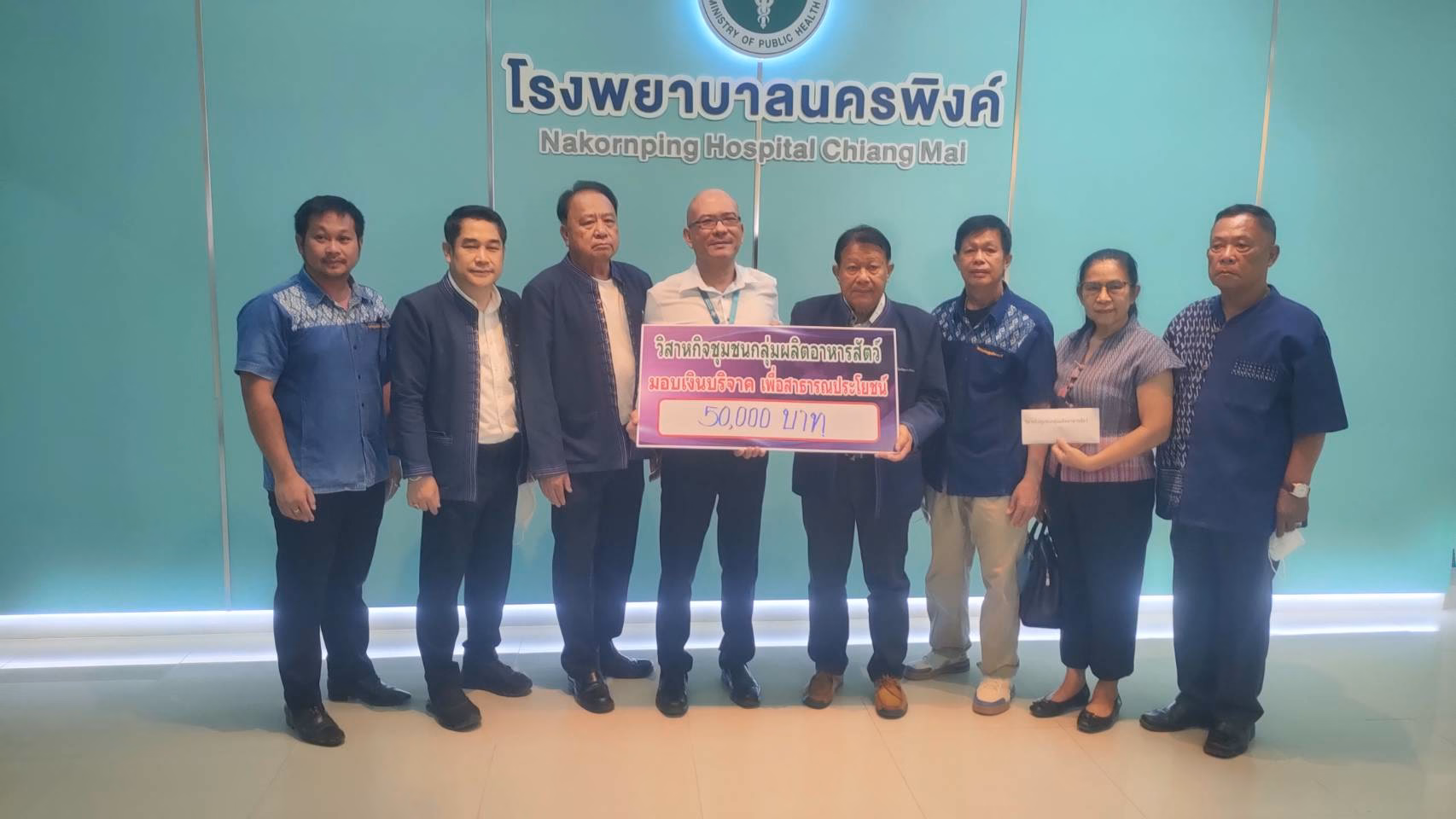 นายดี จันทคลักษณ์ ประธานวิสาหกิจชุมชนผลิตอาหารสัตว์ 4 ตำบล เมืองแม่เหียะ อำเภอเมือง จังหวัดเชียงใหม่ นำคณะกรรมการวิสาหิจชุมชนทำกิจกรรมช่วยเหลือสังคม โดยช่วงต้นเดือนเมษายน 2569 นำเงินมอบให้โรงพยาบาลนครพิงค์ จำนวน 50,000 บาท และโรงพยาบาลมหาราชนครเชียงใหม่ จำนวน 50,000 บาท