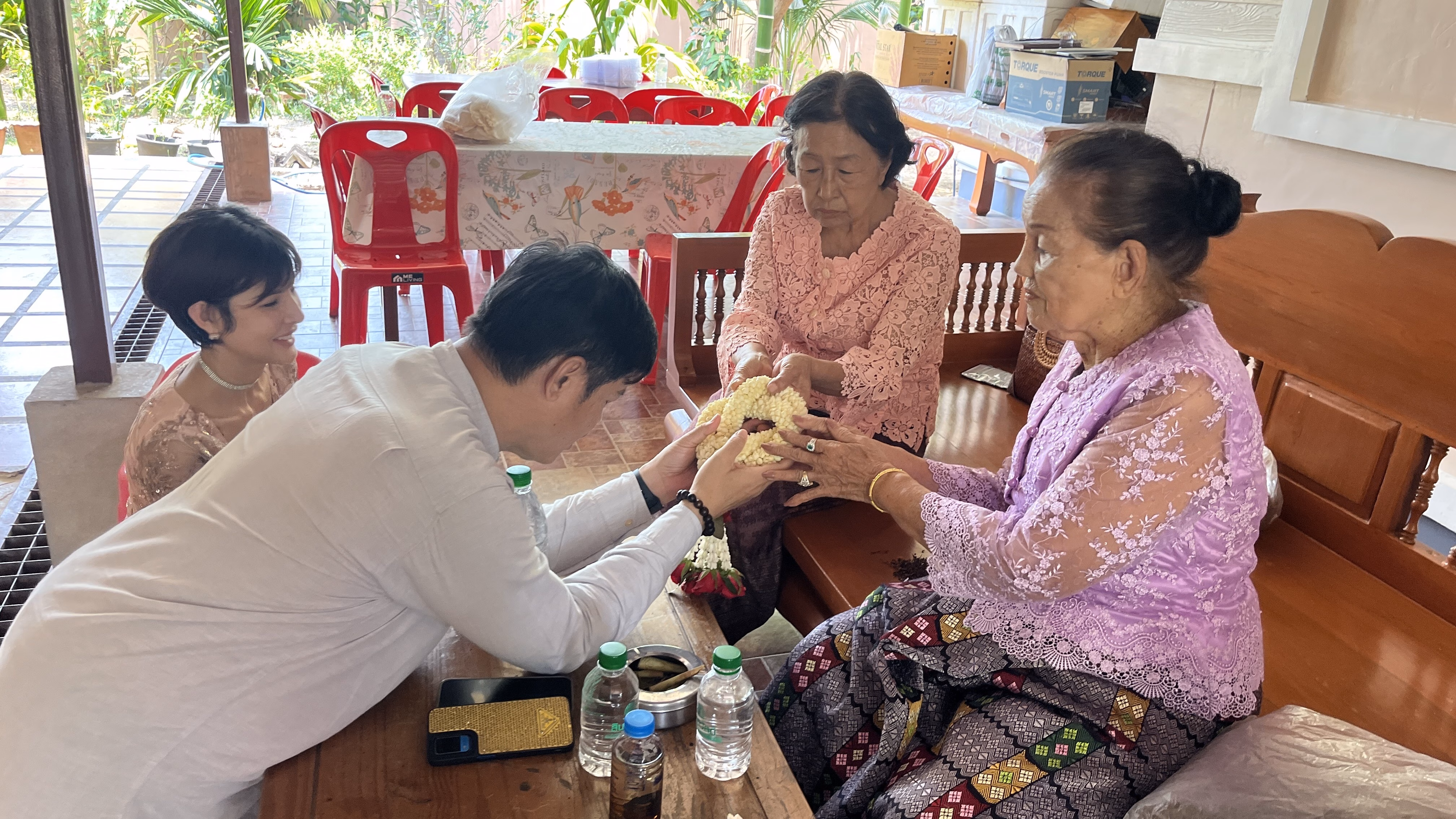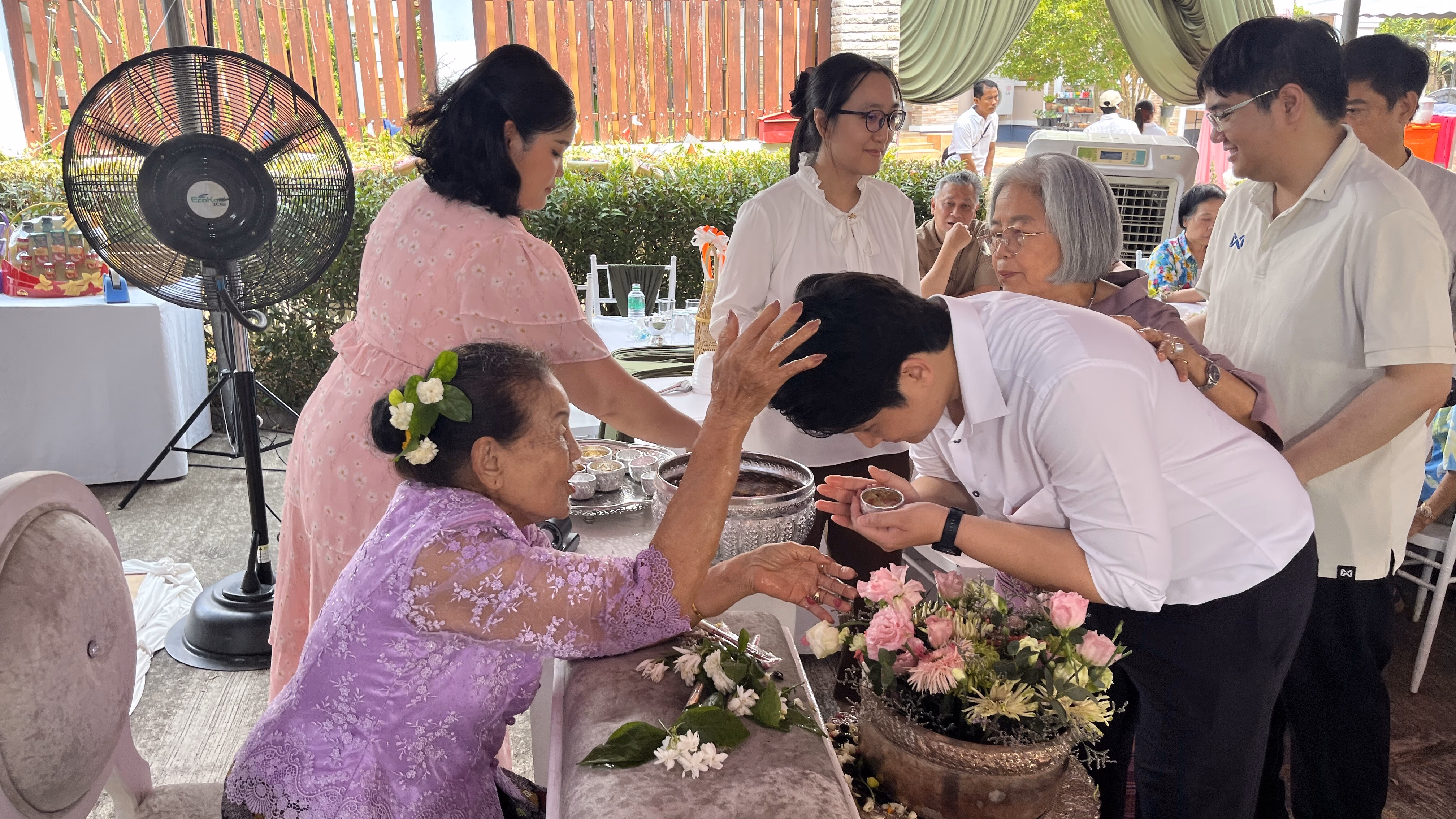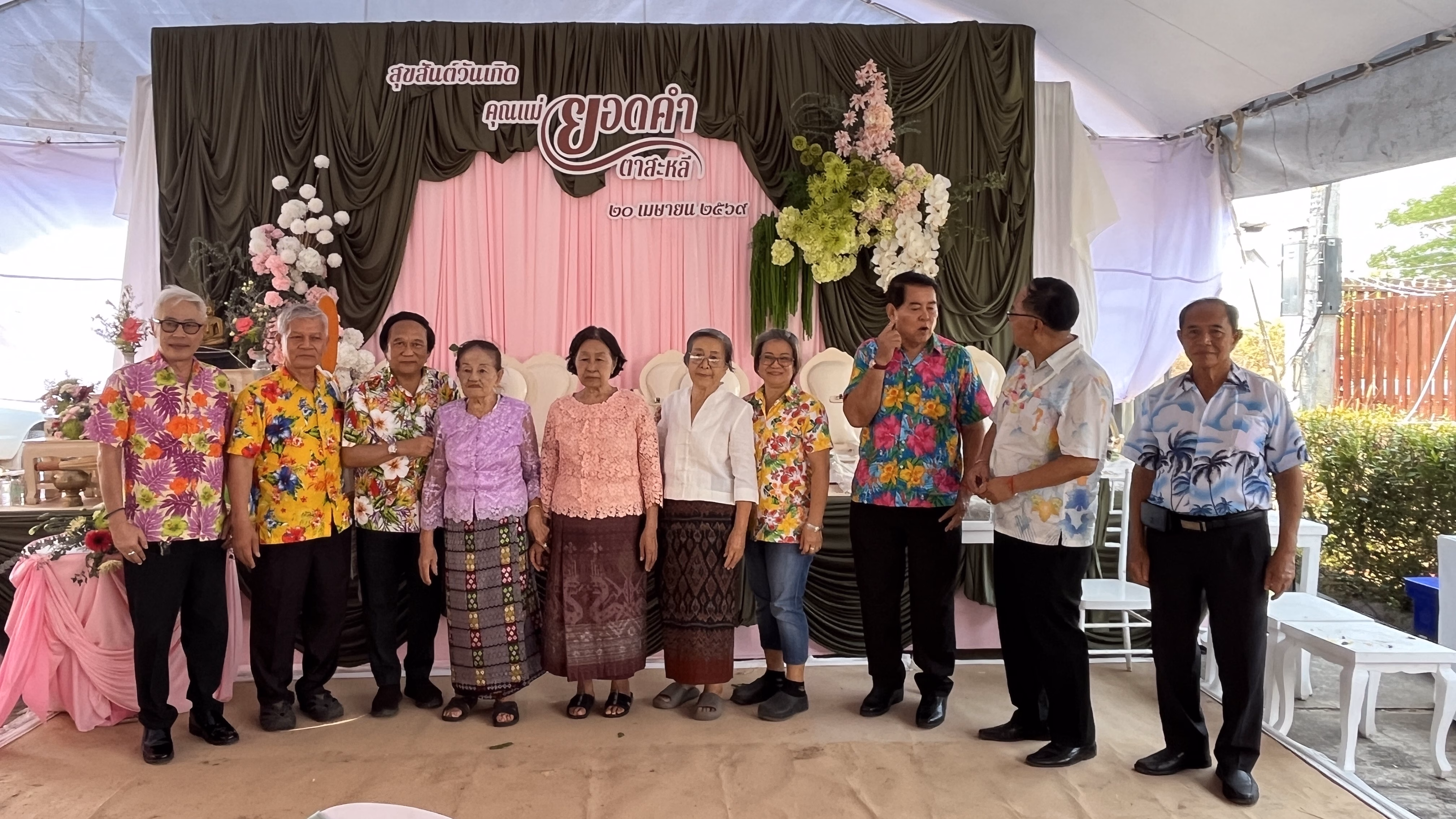 เมื่อวันที่ 20 เม.ย.69 ผู้สื่อข่าวรายงานที่บ้านแม่เลี้ยงยอดคำ ตาสะหลี หรือยายยอดคำ อยู่ ต.แม่ปะ อ.แม่สอด จ.ตาก “พ่อเลี้ยงหล้า” นายอัครเดช ตาสะหลี ประธานผู้บริหาร (CEO) บริษัทแม่สอดฟรีโซน จำกัด (บุตรชาย ยายยอดคำ) พร้อมครอบครัว “ตาสะหลี” เป็นเจ้าภาพจัดงานรดน้ำดำหัวยายยอดคำ พร้อมฉลองวันเกิดอายุ 92 ปีด้วย โดยมีพ่อเลี้ยงคำ จันทร์บุญ นักบุญสองแผ่นดิน เป็นประธานจุดเทียนในพิธีสงฆ์สืบชะตาให้แม่เลี้ยงยอดคำ เสร็จสิ้นพิธีสงฆ์ ตามด้วยการประกอบพิธีสระเกล้าดำหัวยายยอดคำ และพ่อเลี้ยงคำ จัดไปพร้อมๆกัน จากนั้นเลี้ยงอาหารเที่ยงแบบโต๊ะจีน เจ้าภาพมอบของที่ระลึก ได้ชมวงดนตรีชื่อดังของแม่สอดให้ความบันเทิงตลอดทั้งวัน