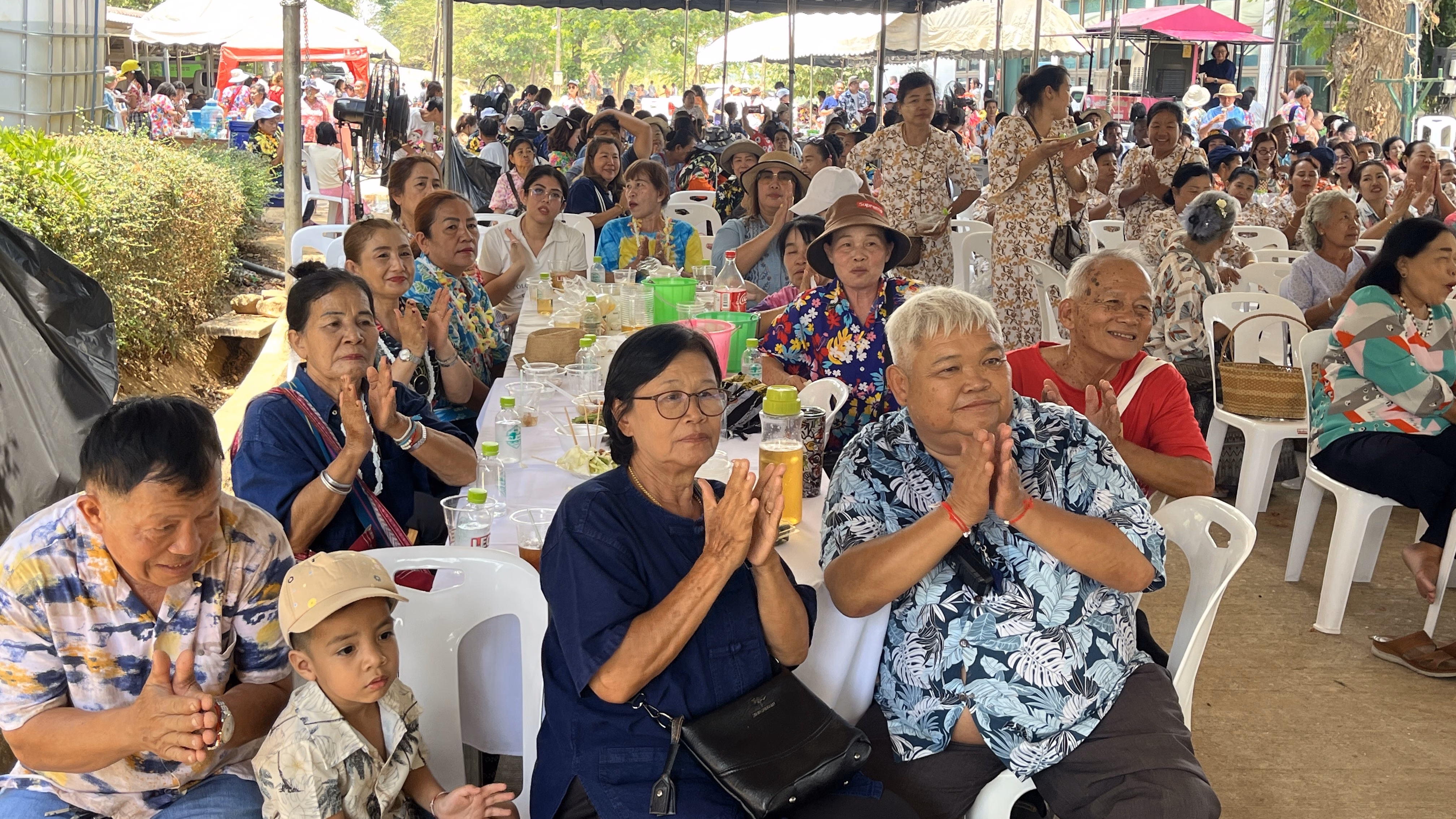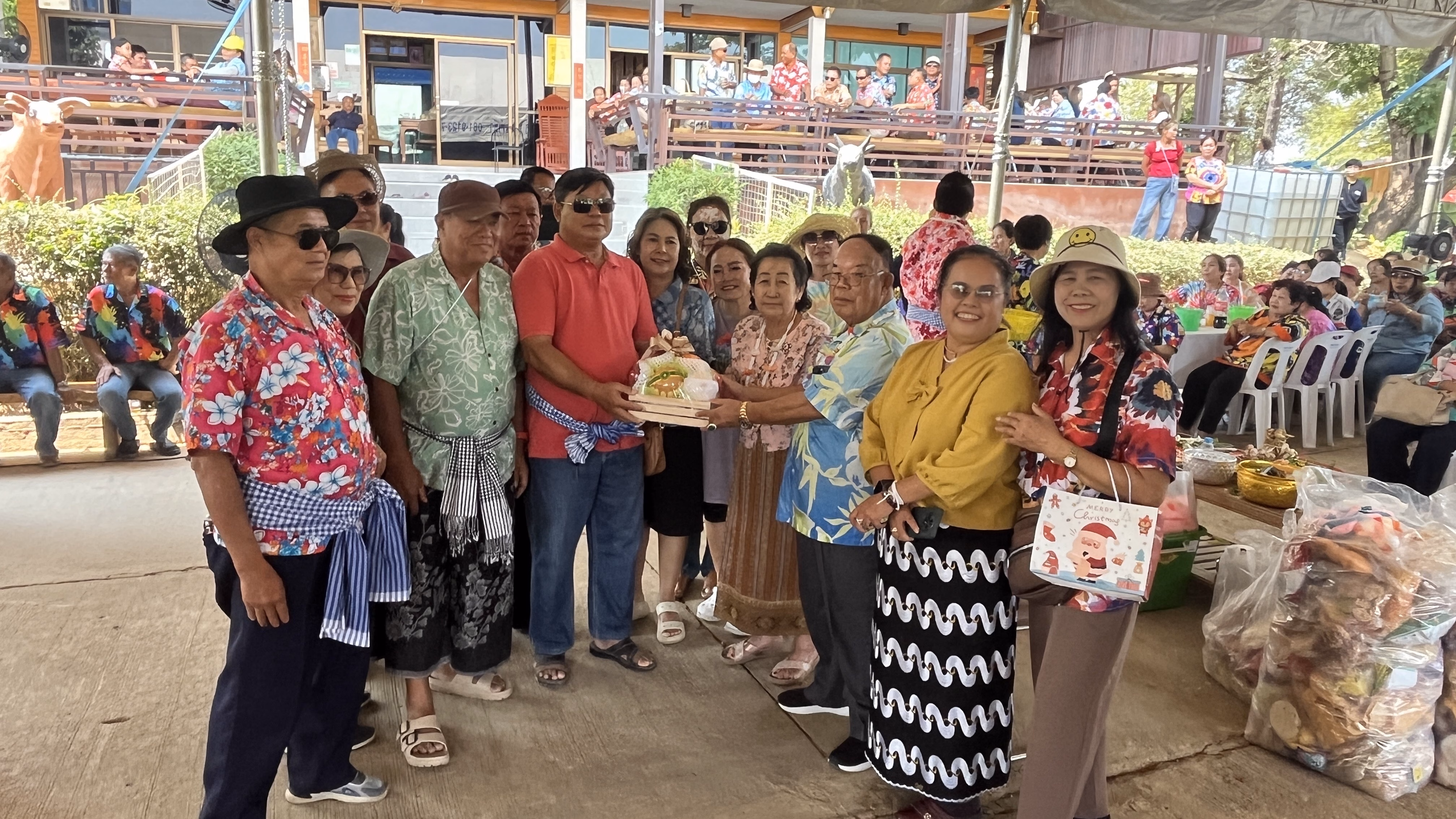 รดน้ำดำหัวแม่เลี้ยงยอดคำ ตาสะหลี พร้อมจัดวันเกิดให้คุณยายยอดคำ ที่มีสุขภาพดีมาก พร้อมดำหัวพ่อเลี้ยงคำ จันทร์บุญ นักบุญสองแผ่นดิน ชาวบ้านร่วมดำหัวจำนวนมาก