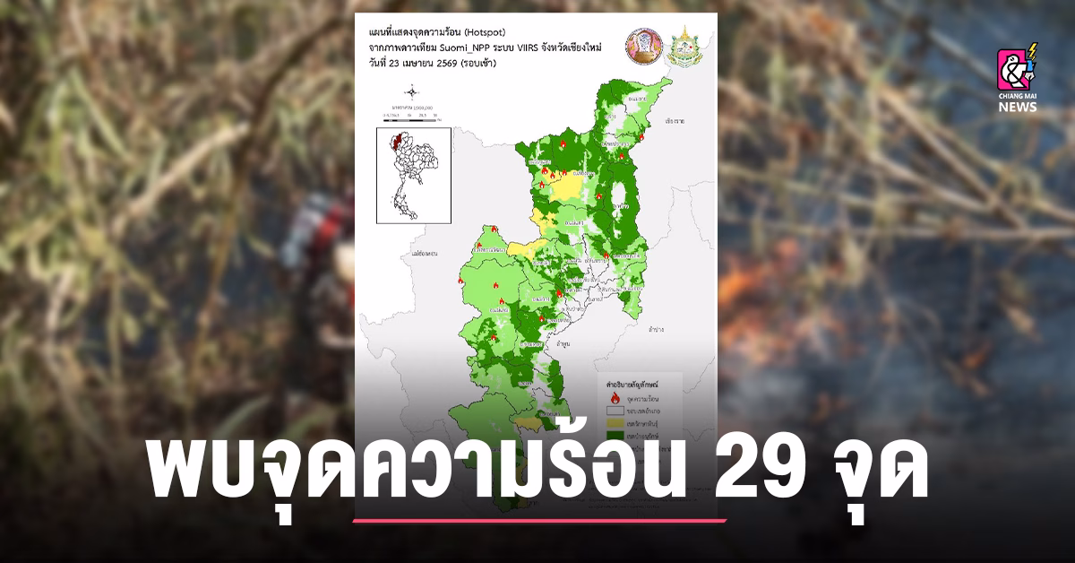 ไฟป่าเชียงใหม่ รอบเช้าวันนี้พบจุดความร้อน 29 จุด สะสมอยู่ที่ 10,642 จุด สถิติยอดสะสมมากกว่าปี 2568 ในห้วงเวลาเดียวกัน 6,356 จุด คิดเป็น เพิ่มขึ้น 148%