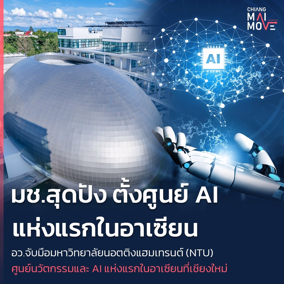 มช. สุดปัง! ตั้งศูนย์ AI แห่งแรกในอาเซียน หลังเซ็น MOU ครั้งประวัติศาสตร์ กระทรวง อว.จับมือมหาวิทยาลัยนอตติงแฮมเทรนต์ (NTU)