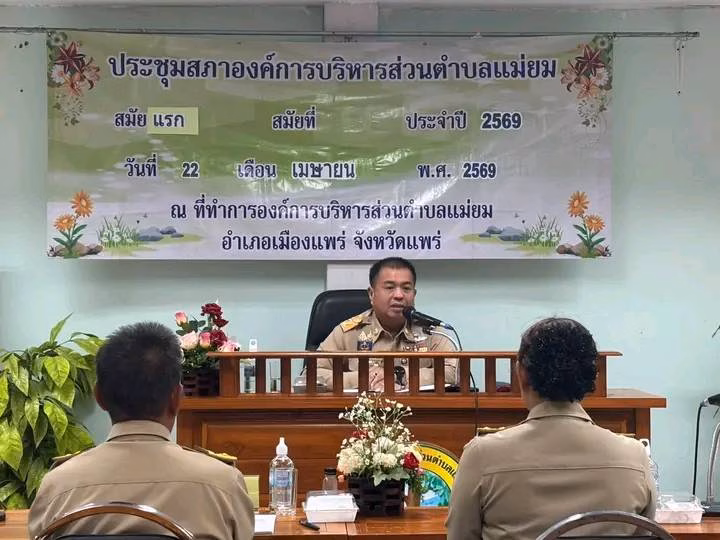 เมื่อวันพุธที่ 22 เมษายน 2569 เวลา 10.30 น. ณ ห้องประชุมสภา อบต.แม่ยม นายนิกร ยะกะจาย นายอำเภอเมืองแพร่ ได้ประกาศเรียกประชุมสภาองค์การบริหารส่วนตำบลแม่ยม ครั้งแรก