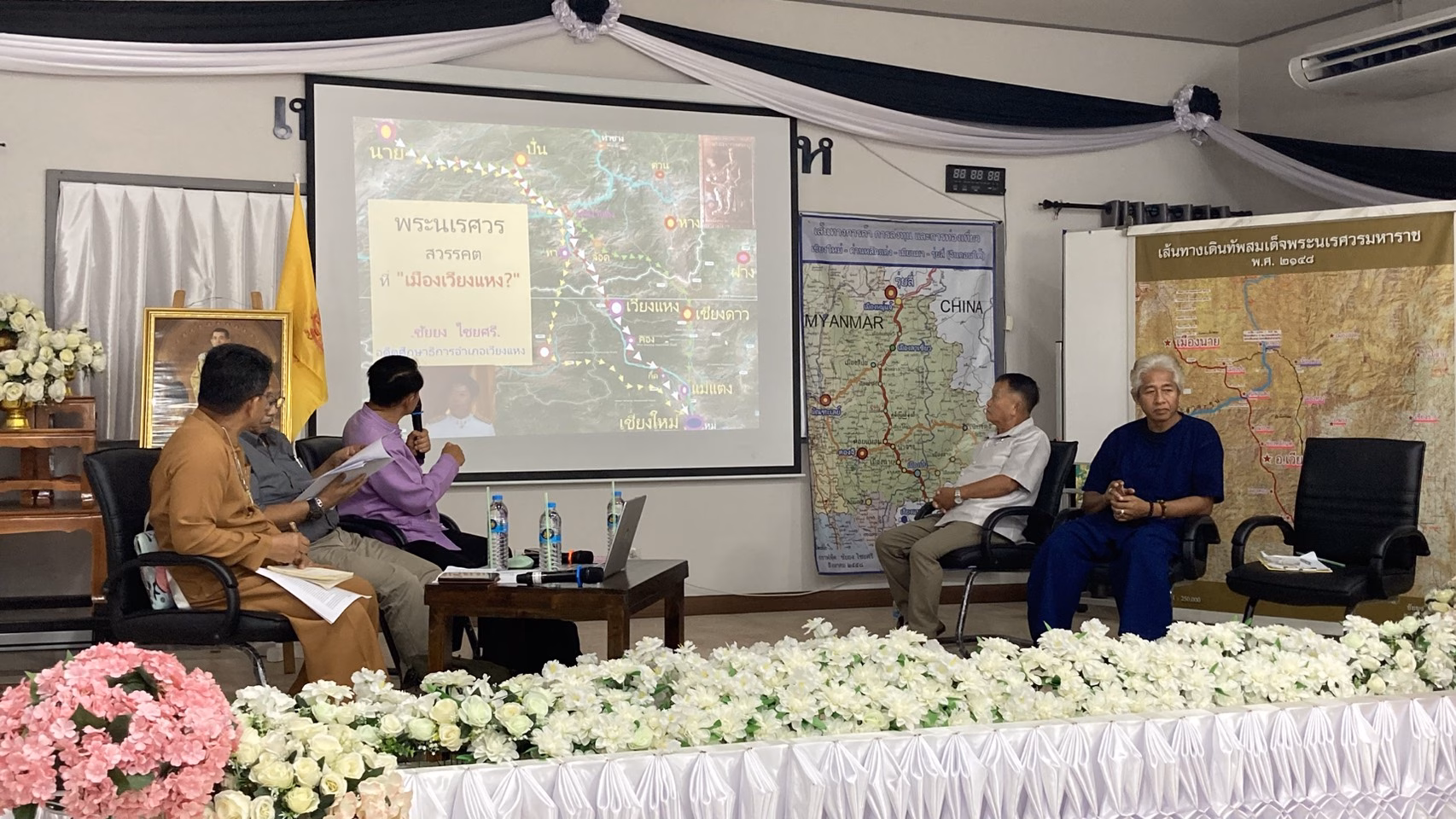 26 เมษายน 2569 กิจกรรมเสวนา สมเด็จพระนเรศวรมหาราช “มหาราชผู้ทรงกอบกู้และสร้างชาติ” เพื่อน้อมรำลึกถึงพระมหากรุณาธิคุณและพระเกียรติคุณของสมเด็จพระนเรศวรมหาราช ในมิติอำเภอเวียงแหงกับประวัติศาสตร์เส้นทางเดินทัพสุดท้ายสมเด็จพระนเรศวรมหาราช ณ ห้องประชุมสำนักงานเทศบาลตำบลแสนไห อำเภอเวียงแหง จังหวัดเชียงใหม่ โดย พลเอกสุทัศน์ จารุมณี เป็นองค์ปาฐก อาจารย์ไพศาล จั่วทอง อาจารย์ประจำภาควิชาวิศวกรรมโยธา คณะวิศวกรรมศาสตร์ มหาวิทยาลัยเชียงใหม่ ให้เกียรติเป็นวิทยากรพิเศษในหัวข้อเรื่อง “ใต้ร่มพระบารมีจักรีวงศ์”ย้อนอดีตบูรพมหากษัตริย์ผู้ทรงกอบกู้และสร้างชาติ อาจารย์ชัยยง ไชยศรี นักวิชาการอิสระ อดีตศึกษานิเทศก์อำเภอเวียงแหง ผู้ทุ่มเทศึกษาวิจัย เรื่องสมเด็จพระนเรศวรมหาราชกับเวียงแหงประเด็นหัวข้อการเสวนา เส้นทางเดินทัพ ที่ยั้งทัพ โบราณสถาน โบราณวัตถุ หลักฐานทางประวัติศาสตร์เกี่ยวกับเหตุการณ์/พื้นที่สวรรคต เวียงแหงเมืองประวัติศาสตร์ทัพสุดท้ายสมเด็จพระนเรศวรมหาราช เป้าประสงค์การจัดงาน ในปีนี้เริ่มเป็นปีแรกที่กลุ่มคณะได้จัดกิจกรรมรำลึกเล่าประวัติศาสตร์ เรื่องสมเด็จพระนเรศวรมหาราชกับเส้นทางเวียงแหง ด้วยในวันที่ 25 เมษายน ของทุกปี เป็นวันคล้ายวันสวรรคตของสมเด็จพระนเรศวรมหาราช ซึ่งเสด็จสวรรคตเมื่อวันจันทร์ ขึ้น 8 ค่ำ เดือน 6 ปีมะเส็ง ตรงกับวันที่ 25 เมษายน 2148 ครบรอบ 421 ปี ในปีปัจจุบัน พ.ศ.2569เนื่องจากพื้นที่ของตำบลแสนไห อำเภอเวียงแหง จังหวัดเชียงใหม่ ซึ่งเป็นที่ตั้งและประดิษฐานของพระบรมธาตุแสนไห พระบรมธาตุศักดิ์สิทธิ์เก่าแก่ครั้งพุทธกาลและเป็นพระบรมธาตุองค์ประธานของพระธาตุบริวารอีก 8แห่งของอำเภอเวียงแหง ตามตำนานและหลักฐานทางประวัติศาสตร์เล่าสืบทอดต่อกันมาว่า เมื่อปี พ.ศ.2148สมเด็จพระนเรศวรมหาราช ได้เสด็จกรีธาทัพไปตีเมืองอังวะ โดยยกทัพผ่านมาทางอำเภอเวียงแหง ซึ่งปรากฏร่องรอยหลักฐานหลายพื้นที่เชื่อว่าเป็นสถานที่ตั้งทัพหรือยั้งทัพ ฯลฯ และมีความเชื่อกันว่าสมเด็จพระนเรศวรมหาราช ได้เสด็จมาเคารพสักการะพระบรมธาตุแสนไห ทำพิธีออกศึกเพื่อสร้างขวัญกำลังใจและเอาชัยเหนือศัตรู รวมทั้งมีความเชื่อว่าพระบรมธาตุแสนไหซึ่งตั้งอยู่บนเส้นทางเดินทัพระหว่างเมืองแหง ประเทศไทยกับเมืองหาง ประเทศพม่า มีความเกี่ยวข้องเชื่อมโยงกับการประชวร การเสด็จสวรรคต หรือการบำเพ็ญพระราชกุศลพระบรมศพสมเด็จพระนเรศวรมหาราช โดยเฉพาะบริเวณลานพิธีของพระบรมธาตุแสนไห ได้ปรากฏแท่นก่ออิฐโบราณ 2 แท่น ทางด้านทิศเหนือและทาง