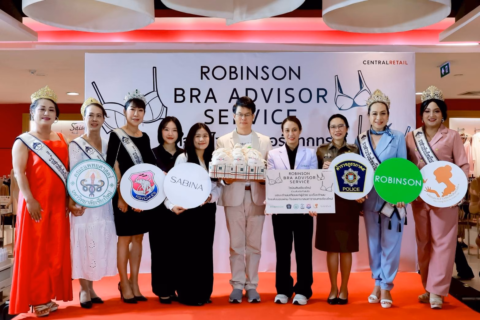 โรบินสันเชียงใหม่ ร่วมกับ ตำรวจภูธรภาค 5 โรงพยาบาลมหาราชนครเชียงใหม่ กองบิน 41 และชมรมนางสาวเชียงใหม่ในดวงใจ ร่วมจัดกิจกรรม ROBINSON BRA ADVISOR SERVICE “Sewing Cup Sewing Heart เย็บเต้ารวมใจ สู้ภัยมะเร็ง” โดยซาบีน่า (Sabina)