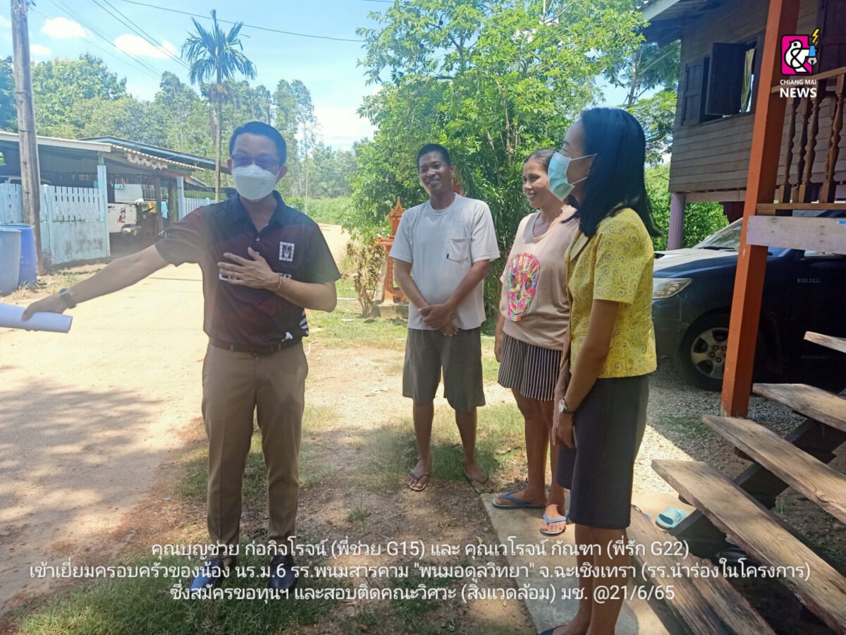 วันอังคารที่ 21 มิถุนายน 2565 ที่ผ่านมา คณะกรรมการ โครงการทุนสานฝันปั้นวิศวกร (นร.ม.6) / คณะอนุกรรมการพิจารณาคัดเลือกให้ทุนฯ มูลนิธินักศึกษาเก่าคณะวิศวกรรมศาสตร์ มหาวิทยาลัยเชียงใหม่ โดยคุณบุญช่วย ก่อกิจโรจน์ (พี่ช่วย G15) คุณเวโรจน์ กัณฑา (พี่รัก G22) และผู้ประสานงาน คุณณัชชา อินทรัตน์ (น้องมุก) เจ้าหน้าที่ บริษัท G22 วิศวกรและสถาปนิก จำกัดได้ไปเยี่ยมครอบครัวของน้อง นร. ม.6 โรงเรียนพนมสารคาม “พนมอดุลวิทยา” จ.ฉะเชิงเทรา (โรงเรียนำร่องในโครงการ) ซึ่งสมัครขอทุนฯ และสอบติดคณะวิศวะ (สิ่งแวดล้อม) มหาวิทยาลัยเชียงใหม่ ในการรวบรวมข้อมูลเพื่อดำเนินการพิจารณาการให้ทุนฯ ต่อไป (หมายเหตุ เนื่องจากคณะวิศวะ มช. เปิดเทอมแล้ว จึงทำการสัมภาษณ์น้อง นร. ผ่านระบบสื่ออิเล็กทรอนิกส์) #ทุนสร้างคน คนสร้างอนาคต #ร่วมส่งเสริมให้น้องๆ ที่ขัดสน ได้เรียน ได้เป็นนายช่าง
