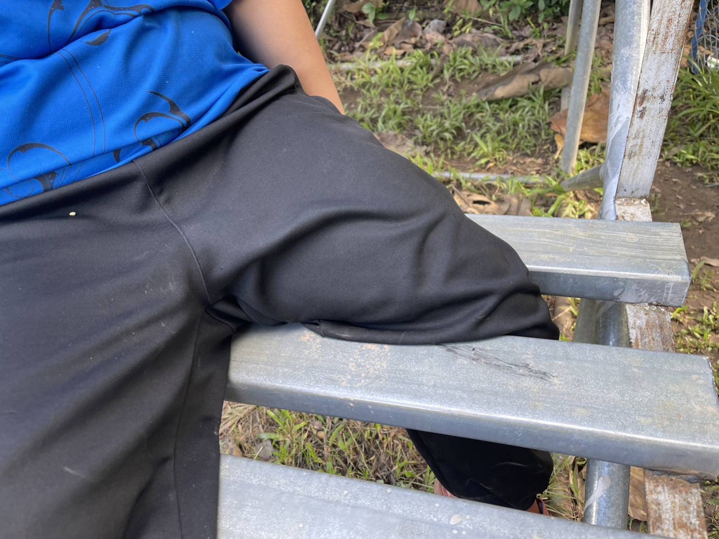 เมื่แไปถึงจุดเกิดเหตุตามที่ได้รับแจ้ง ซึ่งมีอัฒจันทร์สร้างจากเหล็กที่ข้างสนามกีฬาของโรงเรียน พบเด็กนักเรียนชายรูปร่างท้วม สวมเสื้อกีฬาสีน้ำเงินกางเกงวอร์มสีดำ ขาข้างซ้ายติดอยู่ระหว่างร่องของเหล็กกล่องขนาดประมาณ 4×1.5 นิ้ว ซึ่งเอามาสร้างเป็นที่นั่งของอัฒจันทร์เชียร์ โดยอัฒจันทร์ดังกล่าวได้ใช้เหล็กยาวประมาณ 4 เมตร มาวางห่างกัน 2-3 นิ้ว เพื่อทำเป็นที่สำหรับนั่งเชียร์ ขนาดความสูง 6 ชั้น โดยเด็กชายที่ประสบเหตุขาติดร่องเหล็กที่ชั้น 2 ของอัฒจันทร์